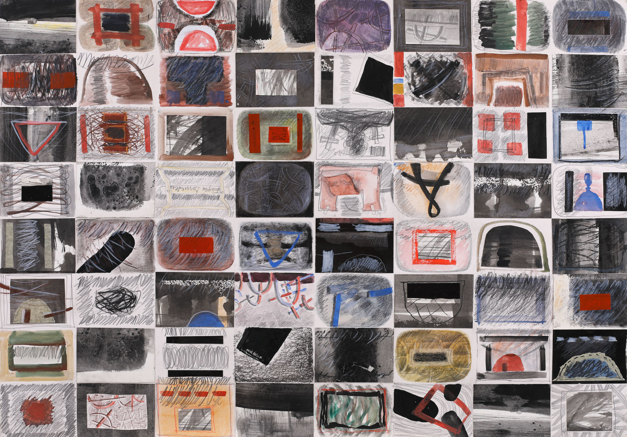 colaj, acuarelă, creion, și tempera pe hârtie