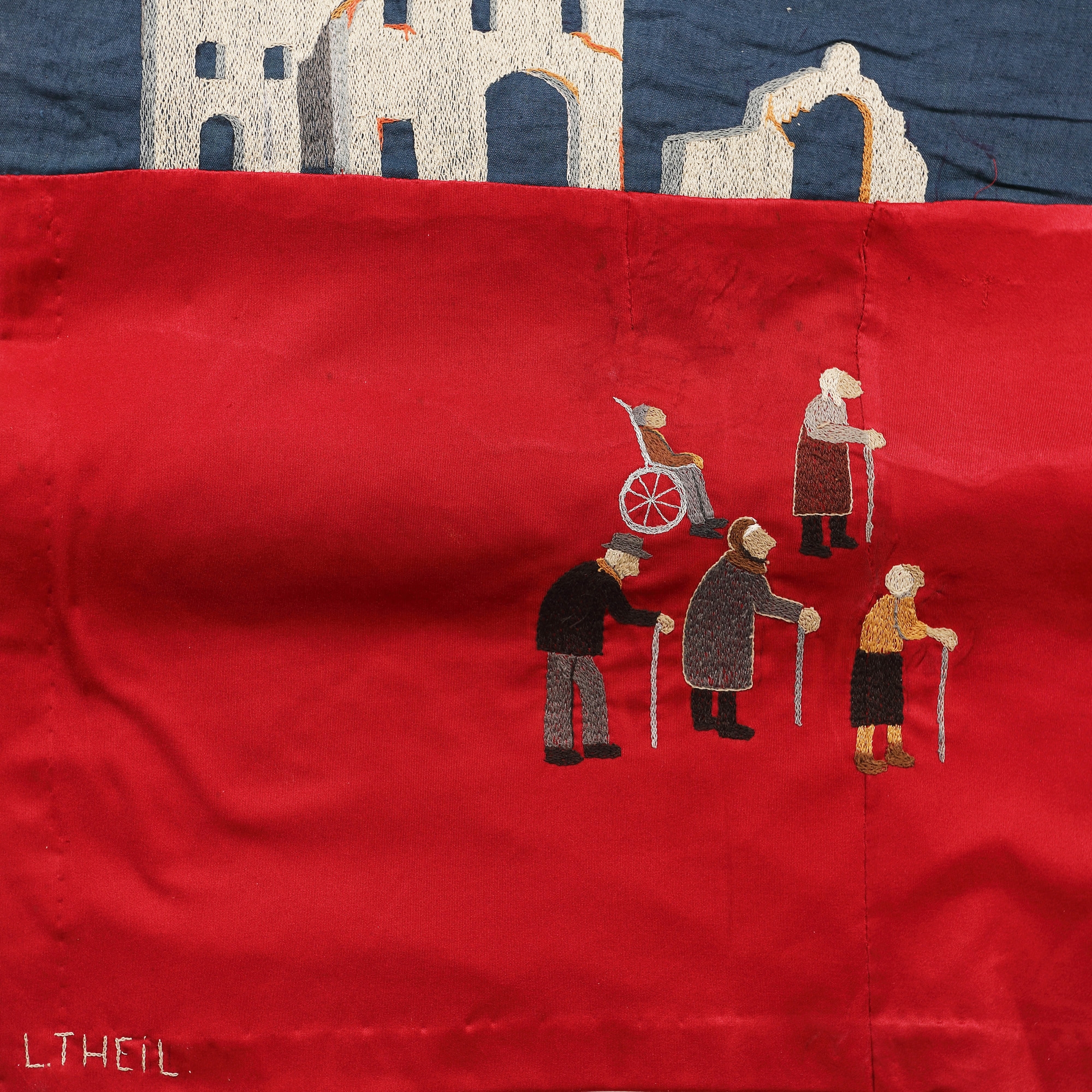 Lilian Theil este o artistă aparte, care la vârsta onorabilă de 88 ani, atrage atenția publicului cu un număr impresionat de lucrări pe suport textil, cu un mesaj contemporan. Această asociere între o tehnică tradițională, a țesutului, a cusutului, până de curând asociată numai femeilor, și mesajul contemporan asociat consumului exacerbat, crizei morale și de identitate prin care trece omenirea, reprezintă unicitatea lucrărilor sale. Lilian Theil s-a născut în 1932, la Brașov, unde a absolvit cursurile liceului “Principesa Elena”. În 1952, a fost exmatriculată de la Academia de Arte Plastice “Nicolae Grigorescu” din București, pe motiv de “origine nesănătoasă”, fiind nepoata profesorului Alexandru Obregia. În același an, a fost evacuată de la domiciliu împreună cu întreaga familie. Și-a reluat activitatea artistică după Revoluția din 1989, într-un exercițiu artistic purificator, cathartic, realizând un număr impresionant de lucrări. “Important pentru mine este să transmit gândurile, ideile și sentimentele mele. Pentru aceasta sunt utile cuvântul, muzica, pensula și culoarea, chiar și cârpele, acul și ața”.