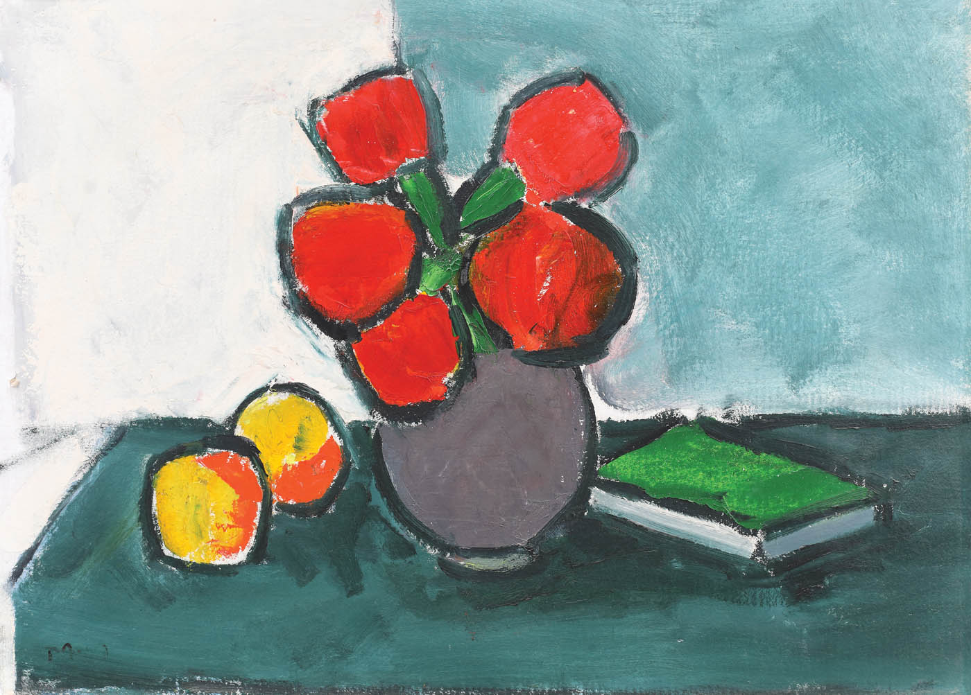 43. Natură statică cu flori, fructe și carte
