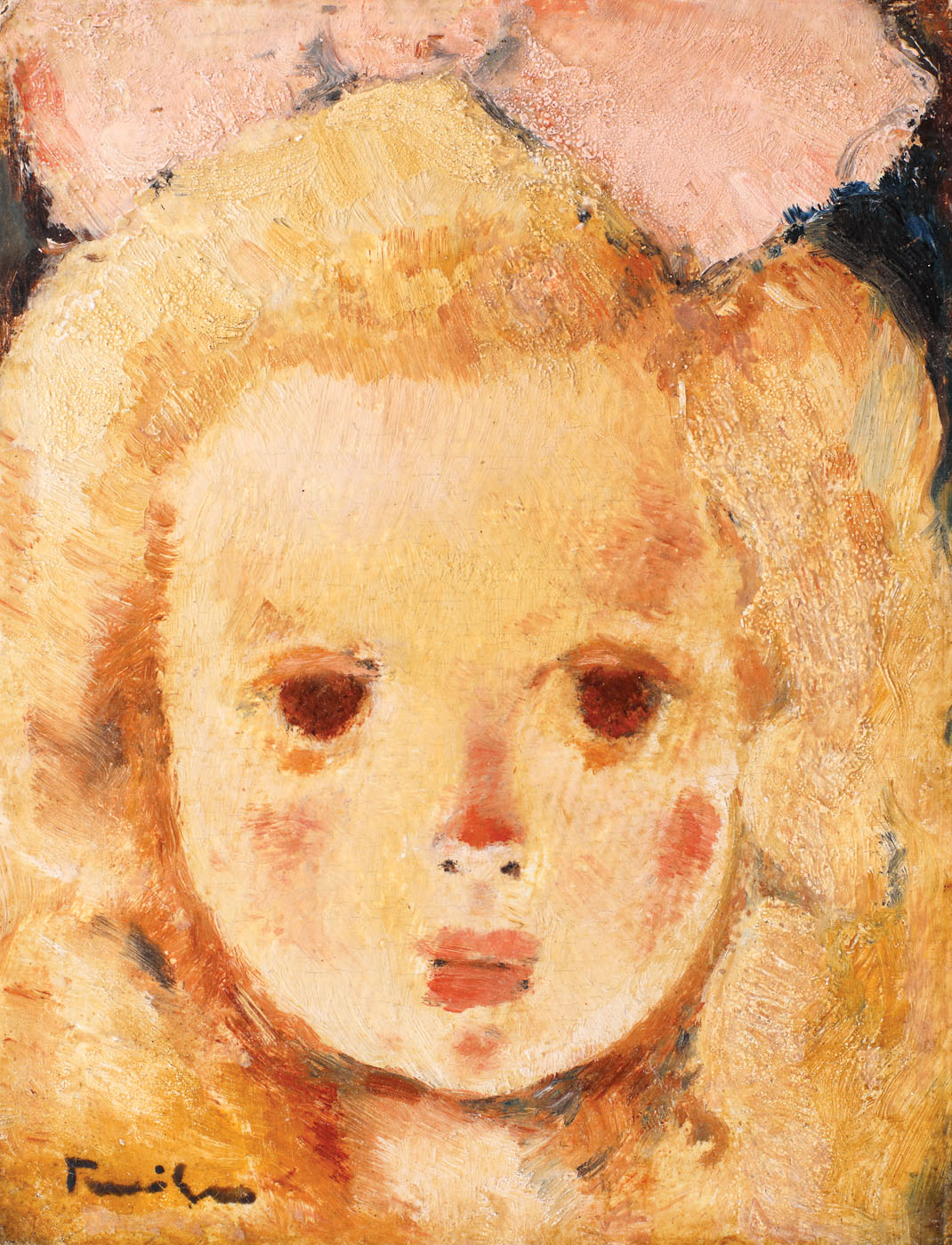 Începându-și activitatea într-o vreme în care pictura românească cunoștea noi semnificații, grație unor înaintași inovatori precum Grigorescu, Andreescu și Luchian, artistul Tonitza continuă această tradiție a noului, propunând o cromatică luminoasă, alături de care va așeza întotdeauna sensibilul și meditația. Aceste două valori, predominante în opera sa, vor dezvălui pasiunea pe care o nutrea pentru cercetarea universului umanului, unde vom întâlni adesea copilul, femeia, intimitatea căminului ori figurile de muncitori, care vor deveni cele mai tratate teme ale sale. Tema copilului, tratată timpuriu de artist, începând cu anul 1912, va fi unul din subiectele care îl vor preocupa, îl vor înduioșa și îl vor converti pe Tonitza în pictorul copiilor. Tema va fi reluată și mai târziu, în anul 1921, când, aspirând la o viață în tihnă, Tonitza se mută cu familia pentru o perioadă de trei ani la Vălenii de Munte, perioadă ce îi va servi ca timp de studiu pentru atenta sa incursiune în lumea celor inocenți. Dorind să aprofundeze incursiunea, artistul caută să își concentreze întreaga putere de interiorizare și simțire asupra chipului copilului, pe care îl cercetează cu o lucidă tandrețe, învăluindu-l adesea ocrotitor pentru a-i alunga temerile și îngrjorarea. În câteva din portrete, îi va suprinde chiar pe propii copii, fiul său devenind astfel Copilul florăresei, iar una din fiice, Irina, devine Katiușa lipoveanca. Dintre elementele expresive ale chipurilor tratate artistul se oprește întotdeauna asupra ochilor, pe care îi observăm cufundați adesea în propriile povești, mirări sau tristeți, alteori ascunși, ascunzând o mâhnire inocentă. Nici zâmbetul nu este una din trăsăturile chipurilor sale, buzele rămânând adesea încremenite în tăcere. Tratată sub semnul inocenței, tema copilului rezumă o incursiune meditativă asupra copilăriei și a vieții, fiind totodată și prilej de tratare a unei cromatici sensibile, expresiile artistului fiind întodeauna dezbătute la nivel lăuntric. (G.M.)