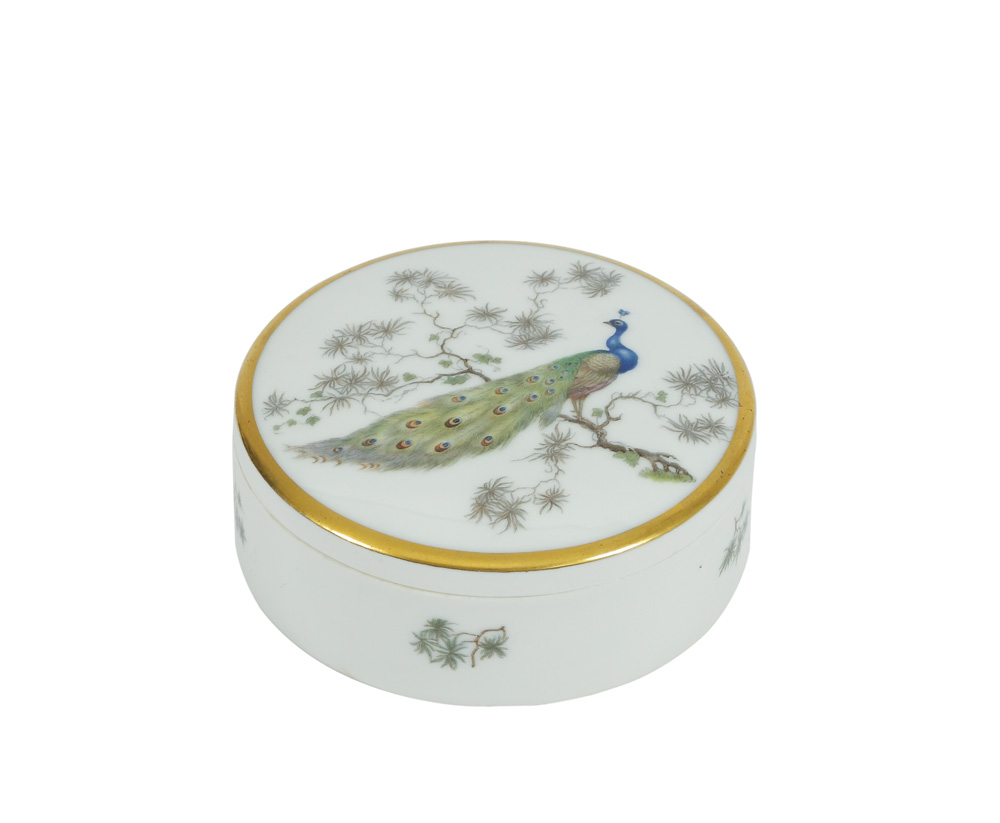 3. Casetă bavareză pictată cu păun, cca 1920-1930