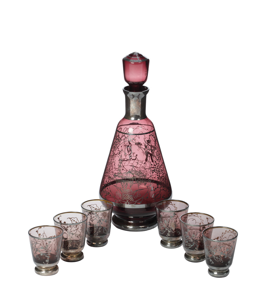 11. Set venețian de cognac, pictat cu argint [Prima jumătate a secolului XX]