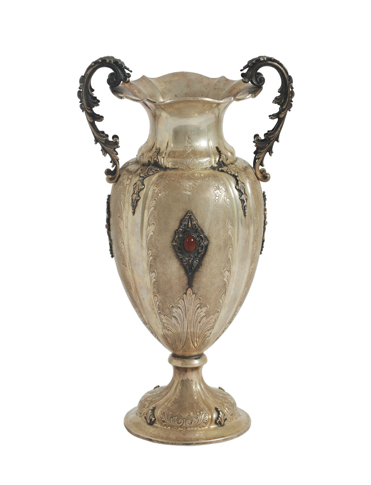 20. Vas-amforă italienesc din argint, decorat cu motive vegetale și agate, cca 1935
