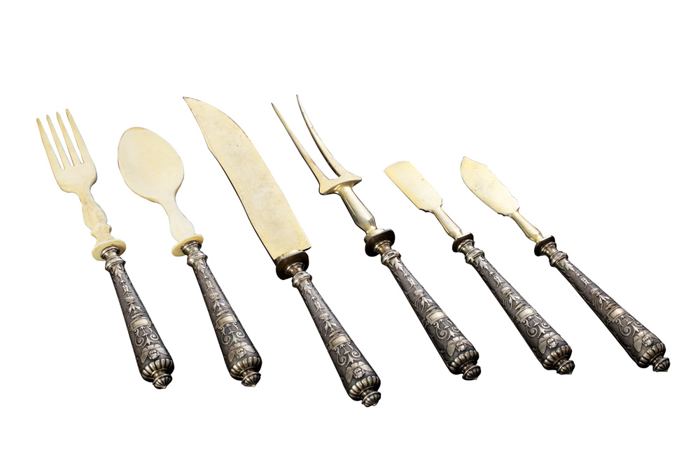 21. Garnitură de piese de servit, din argint și fildeș, bogat decorate Neo-clasic [1870-1896]
