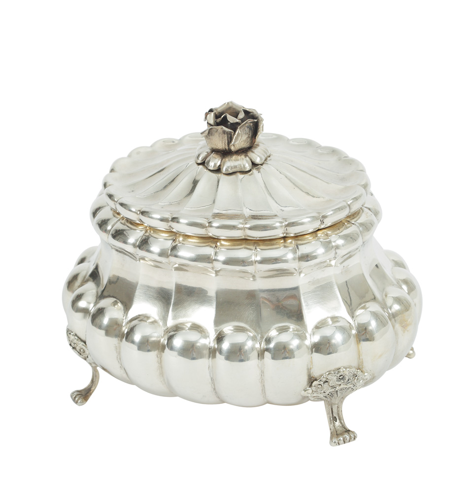 27. Zaharniţă din argint în stil Biedermeier, decorată cu trandafir [Cca 1937]