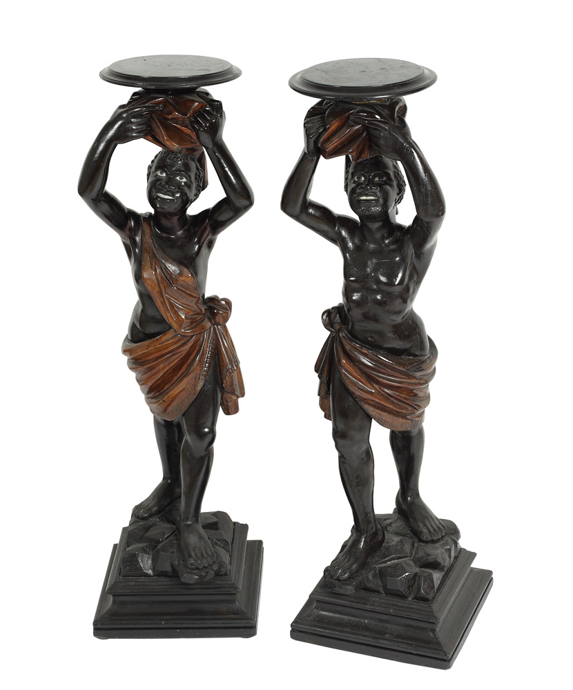 35. Pereche de postamente olandeze coloniale, reprezentând tineri mauri, secolul XIX