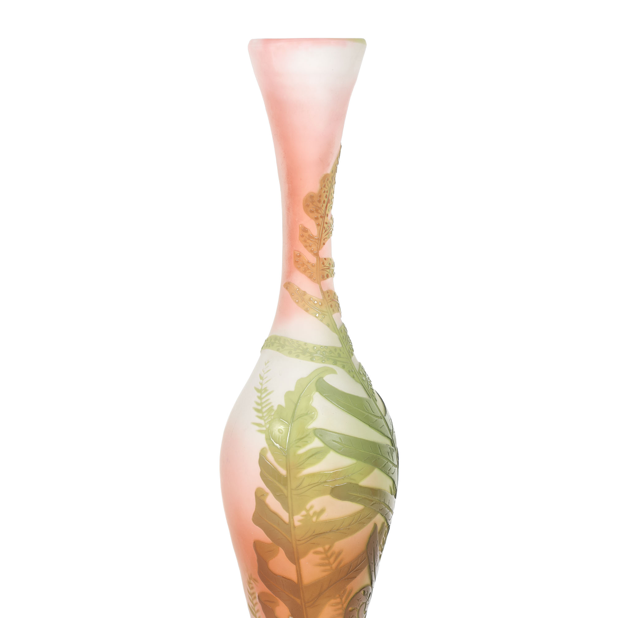 8. ”'Fougères” - vas Gallé decorat cu ferigi, în tonuri de oranj și verde, cca. 1910