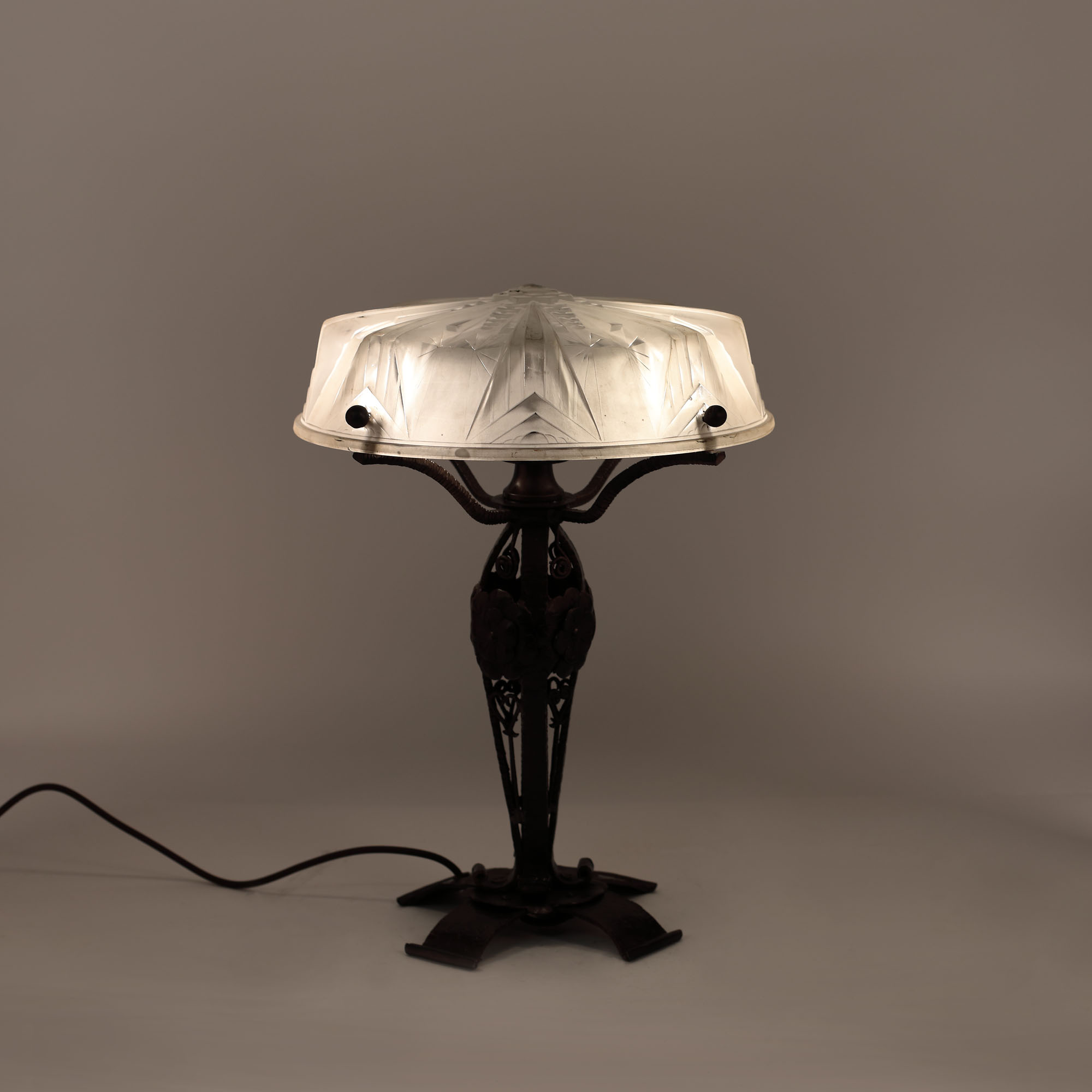 41. Lampă Art Deco, de masă, din sticlă Muller Frères si montură Henri Fournet, cca. 1930