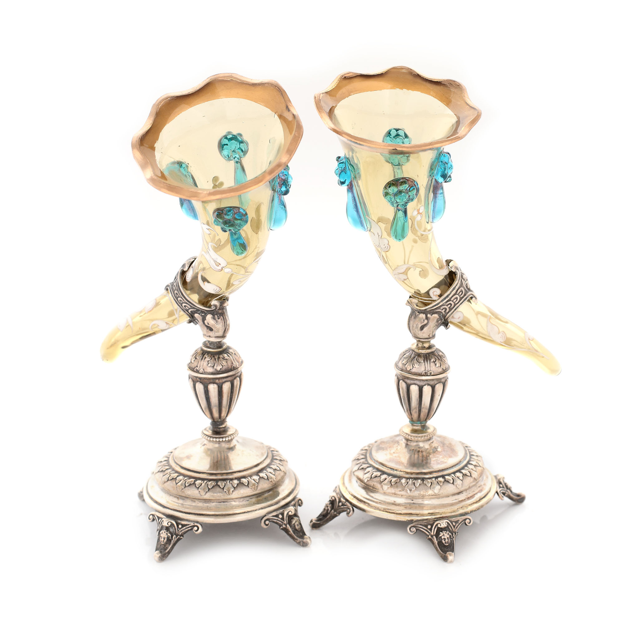 22. Rară pereche de soliflore Biedermeier, cu suport din argint Koch & Bergfeld, cca. 1845