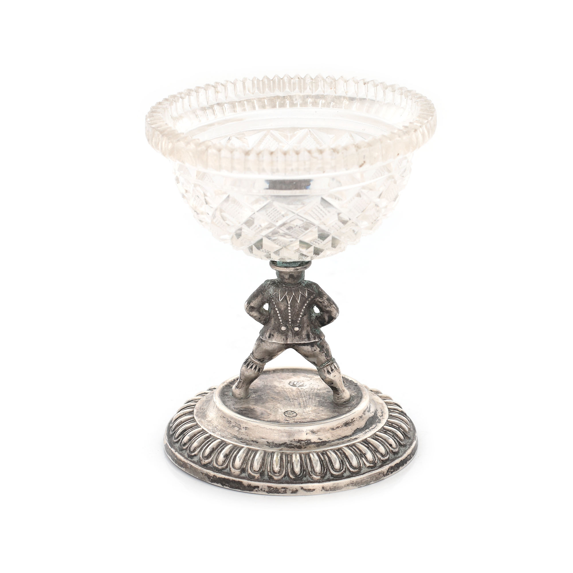 24. Solniță pe suport figurativ, din argint și cristal, cca. 1850
