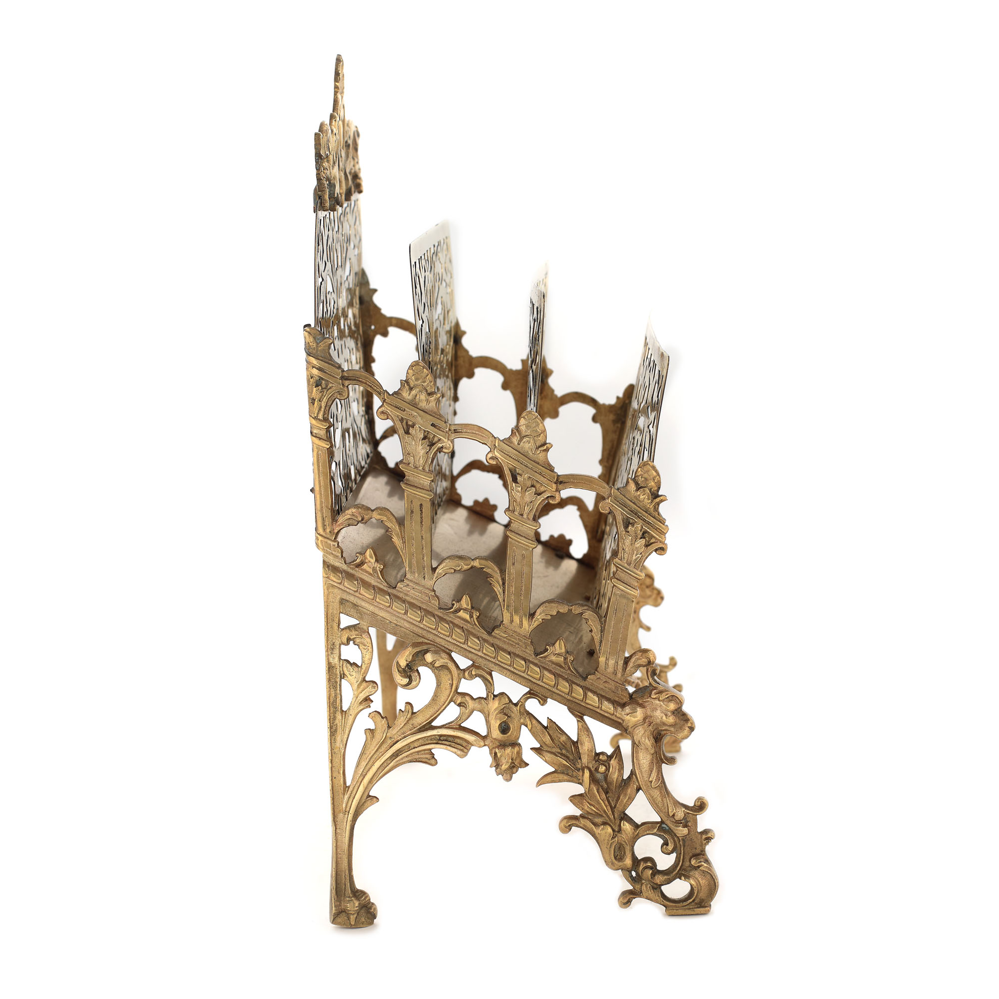 6. Suport Belle Époque, pentru scrisori, din bronz aurit, decorat cu animale fantastice și model vegetal traforat, cca. 1880