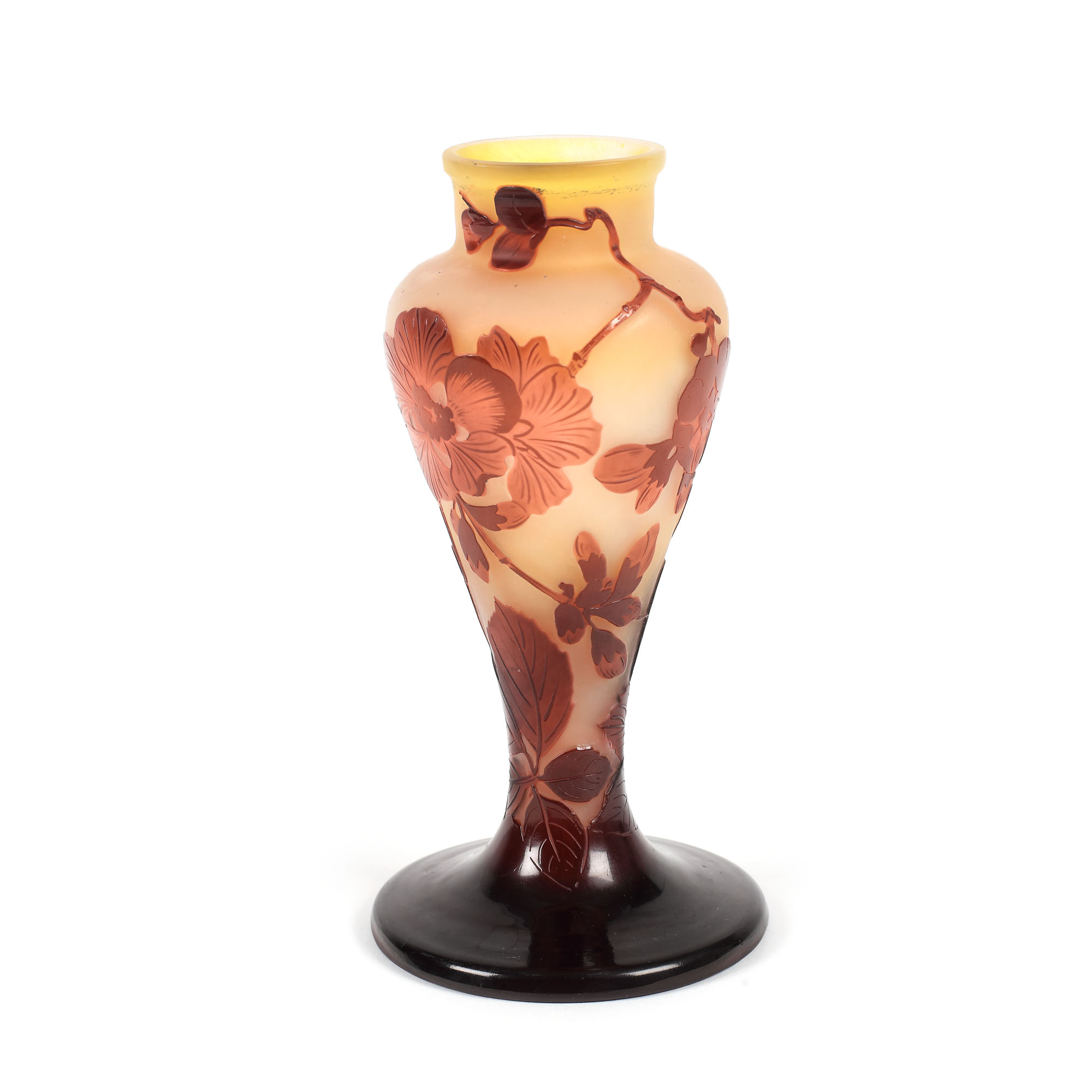 9. Vas Gallé, decorat cu crenguțe de flori de măr, în tonuri oranj și galben, cca. 1914-1936