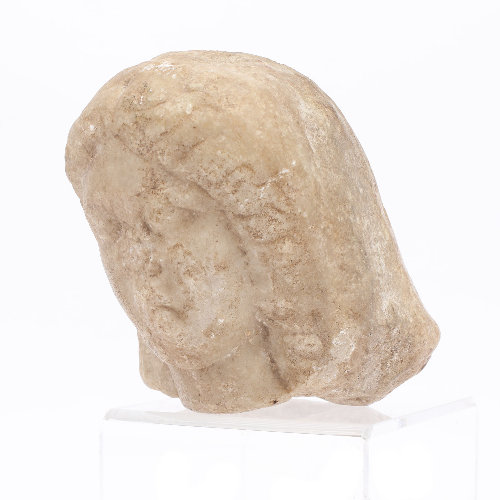 25. Cap de femeie, fragment de statuie din marmură, rol funerar, Tuzla, epocă romană, provine din colecția dr. Horia Slobozianu