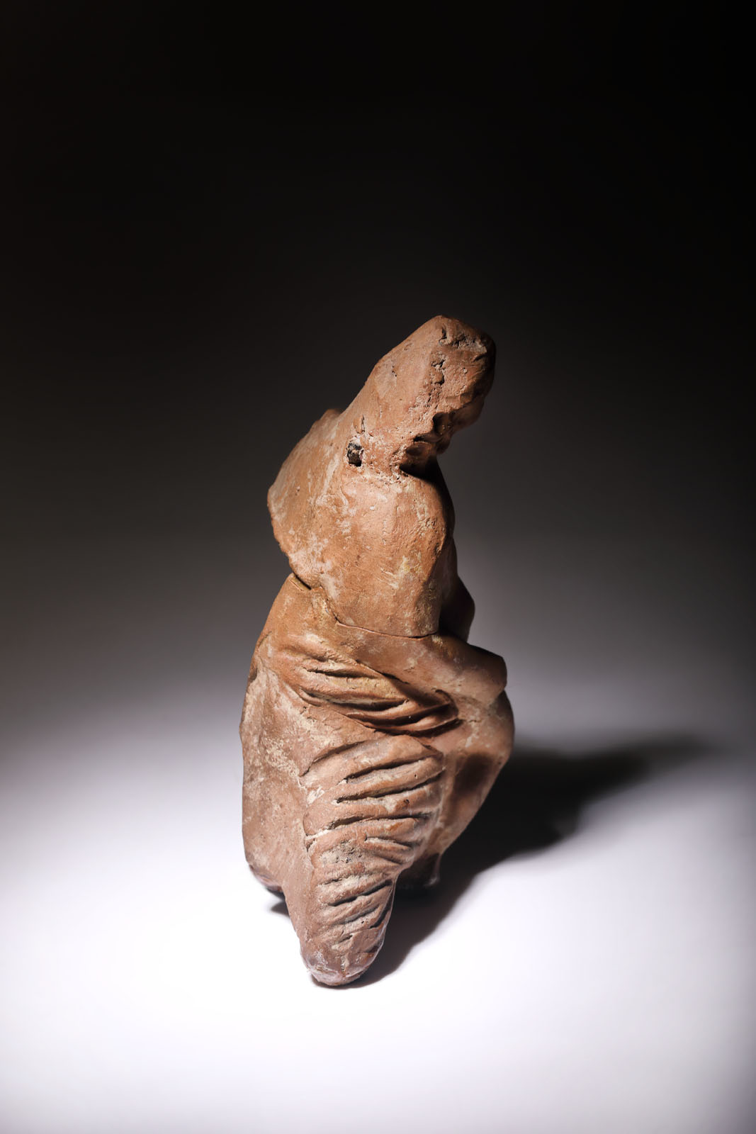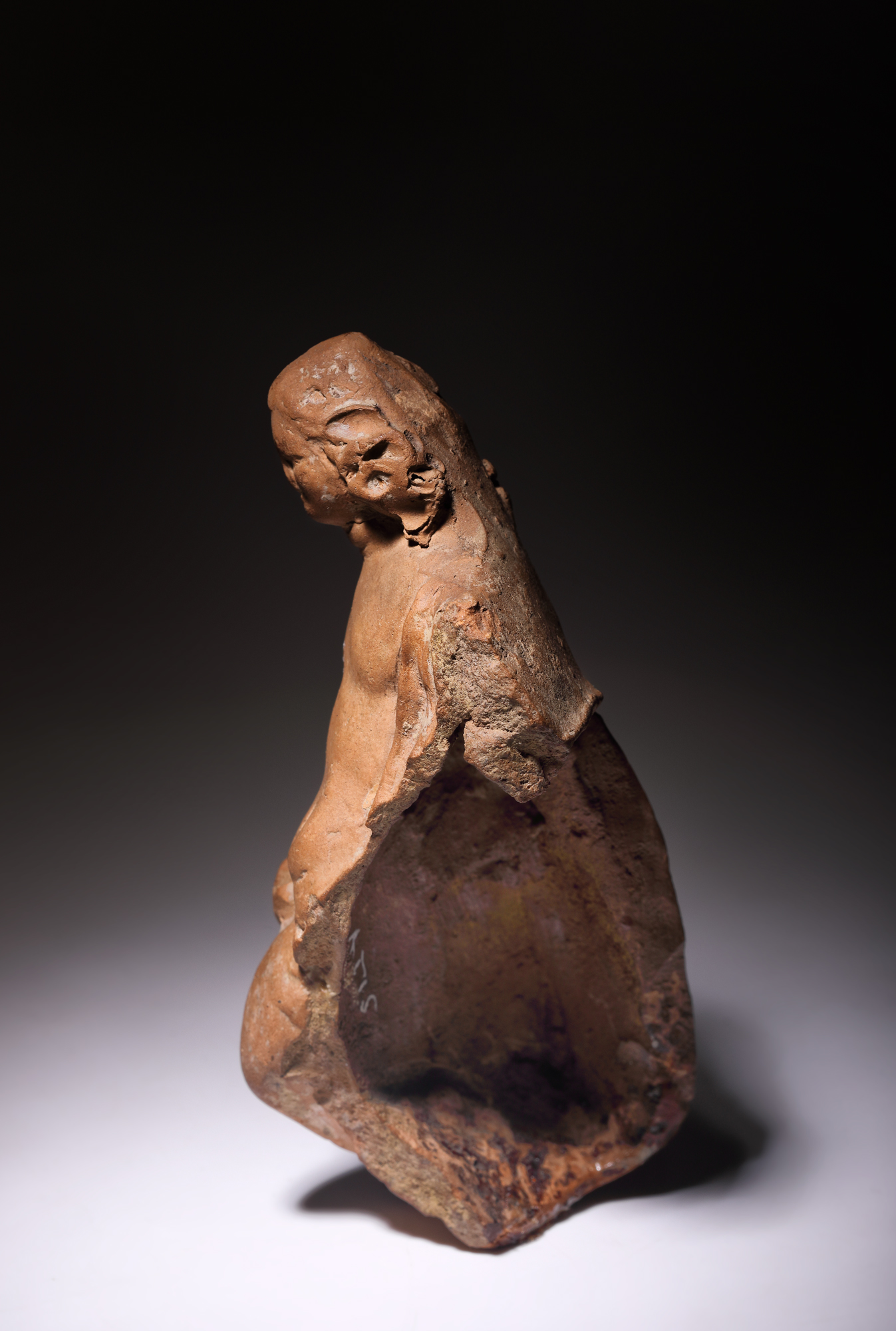 15. Fragment de statuetă din teracotă, ilustrându-l pe Eros, epocă romană, provine din colecția dr. Horia Slobozianu