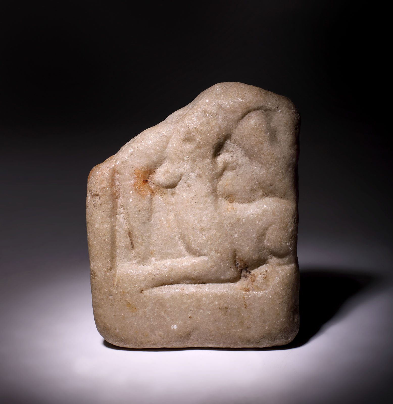 40. Fragment din marmură, ilustrând o scenă de vânătoare, epocă romană, provine din colecția dr. Horia Slobozianu