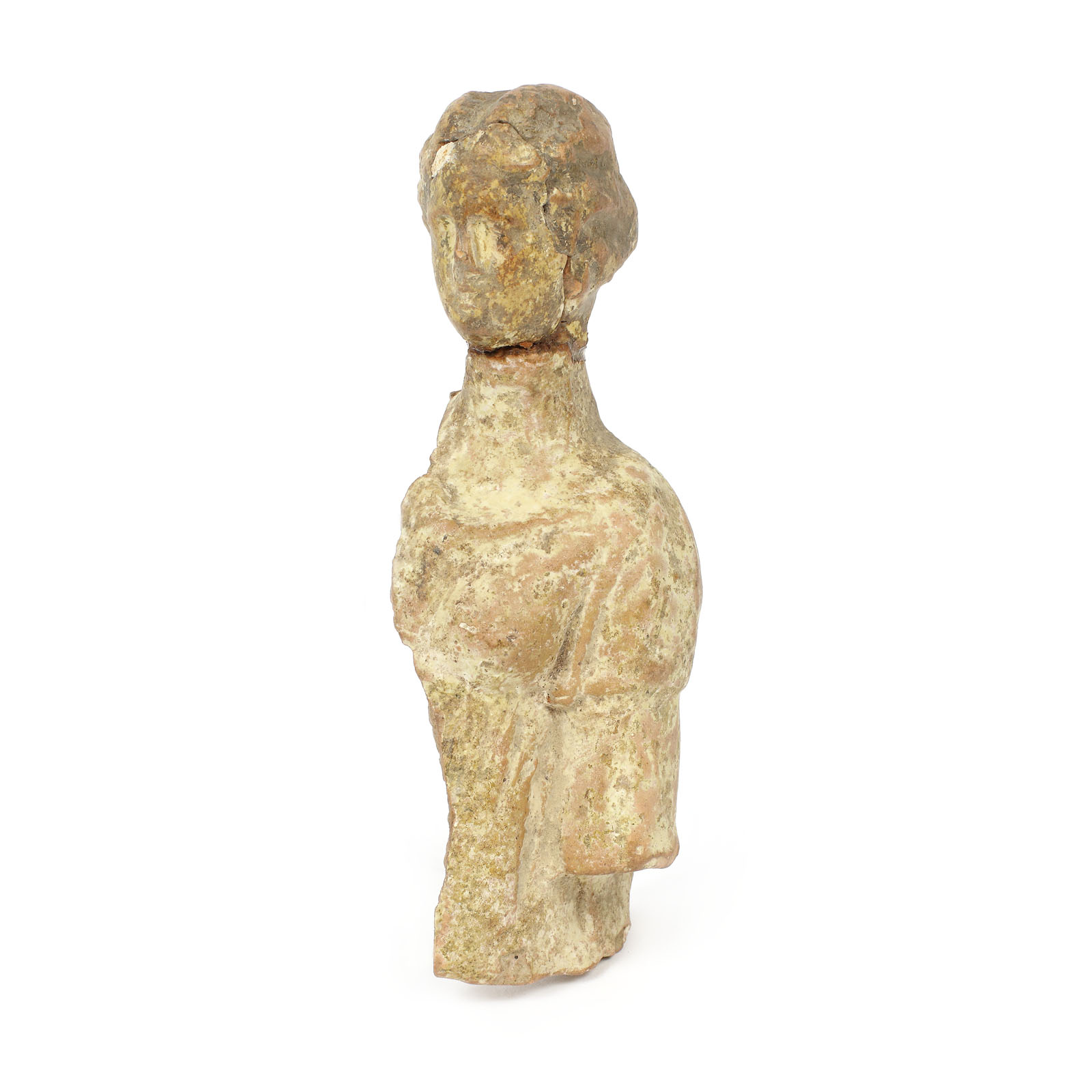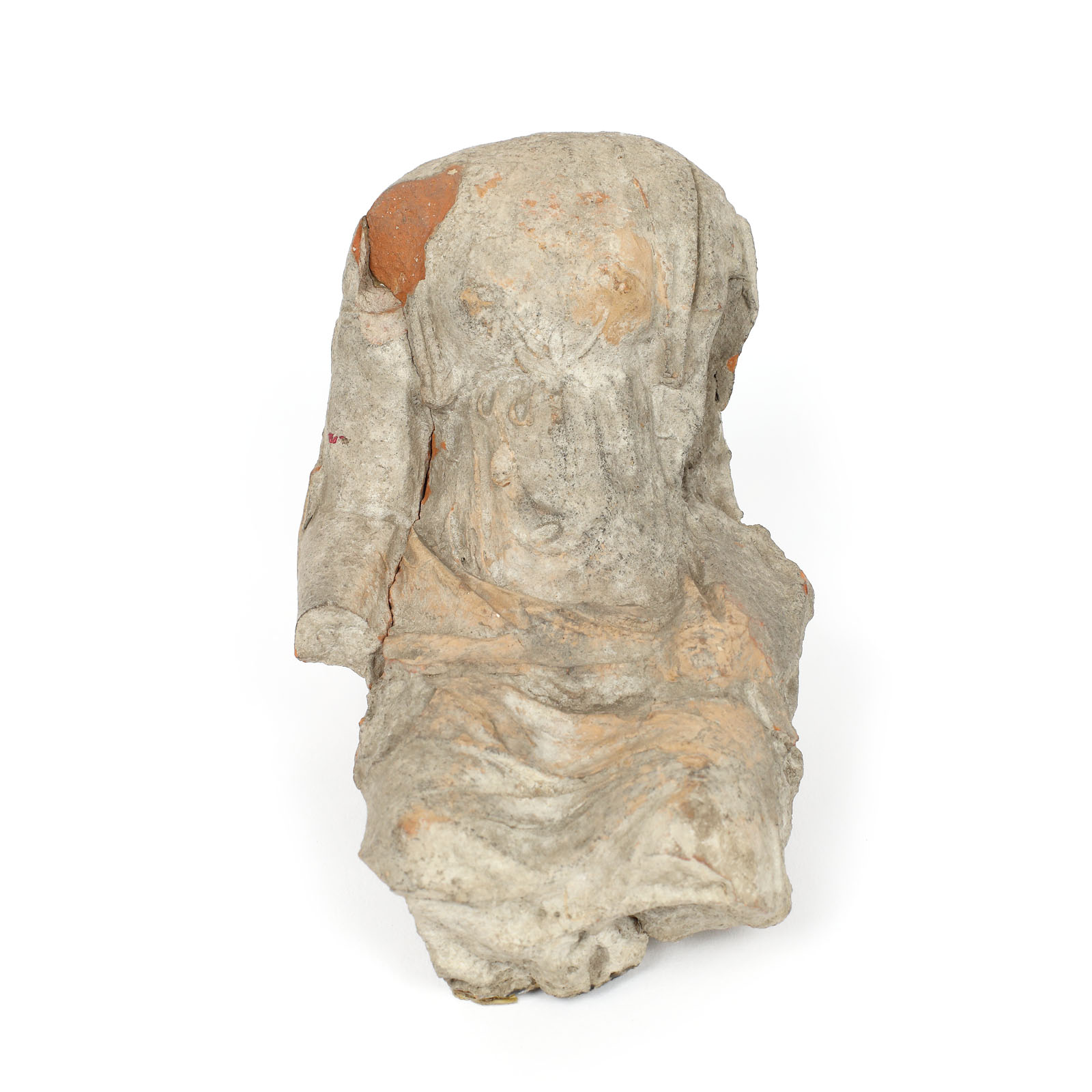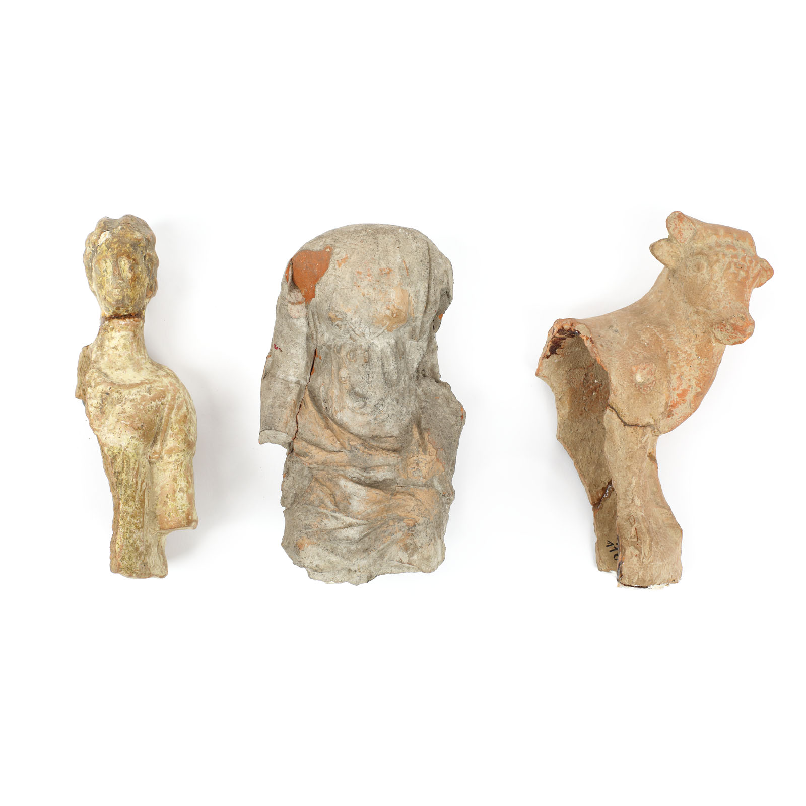 39. Lot format din două fragmente de statuete de teracotă ilustrând un taur, o divinitate (posibil Cybele sau Demetra) și un fragment de statuetă de Tanagra ilustrând o femeie, sec. III-I î.e.n., provine din colecția dr. Horia Slobozianu