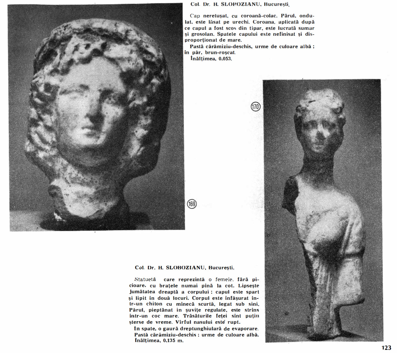 Cybele era venerată în ceremonii sălbatice, sângeroase și orgiastice. La romani, Cybele era zeița naturii și a fertilității. Deoarece domnea peste munți și fortărețe, era reprezentată având o coroană cu forma unui zid de cetate. Sărbătoarea ei anuală de primăvară celebra moartea și învierea iubitului ei Attis. Statueta ilustrând un taur a fost publicată de Canarache, p. 158, nr. 228 și cea ilustrând o femeie a fost publicată de Canarache, p. 123, nr. 170.