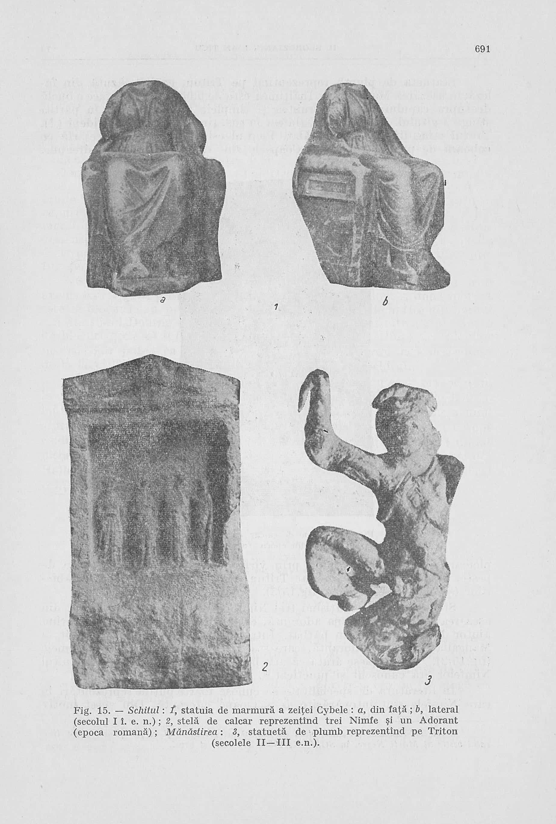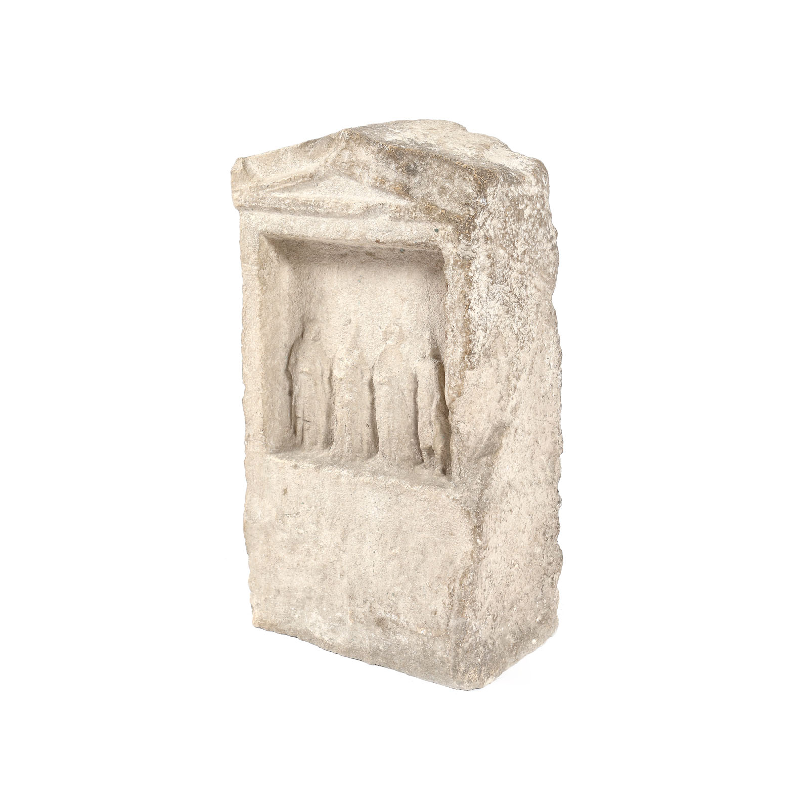 6. Stelă grecească din calcar, ilustrând trei Nimfe și un Adorant, rol funerar, Dobrogea, sec. II-III, provine din colecția dr. Horia Slobozianu