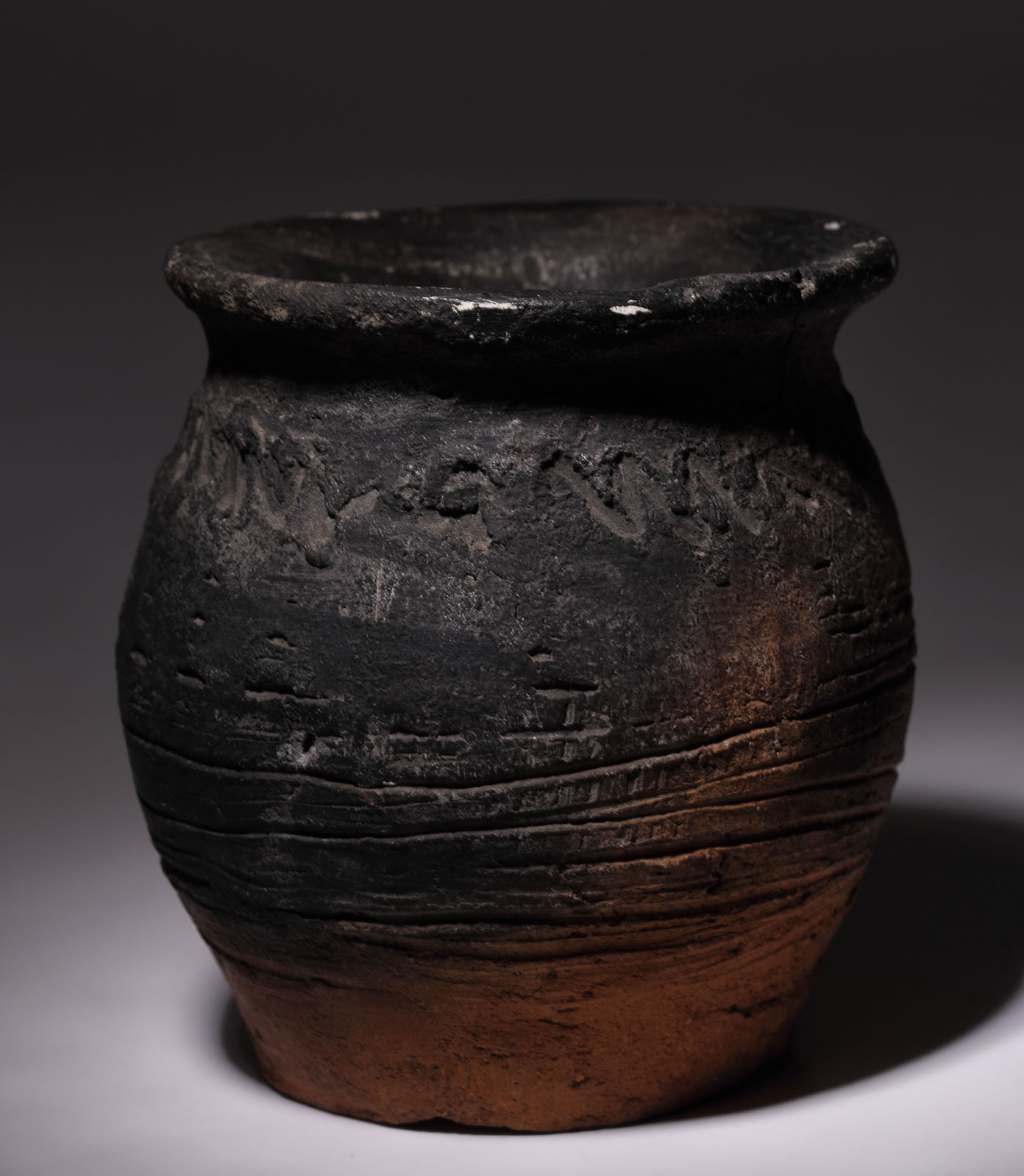 32. Vas din ceramică, decorat cu incizii și val, cultura Dridu, sec. VIII-X, provine din colecția dr. Horia Slobozianu
