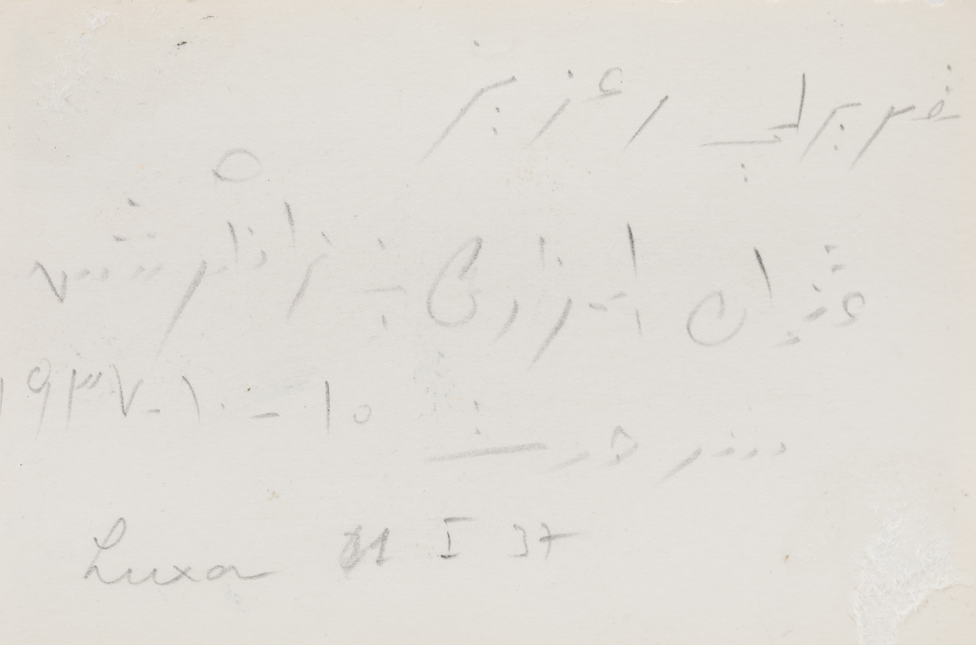 21. ”La Vache Egyptien et le supplice”, fotografie realizată de Aziz Eloui Bey și Lee Miller, purtând desene semnate olograf de Constatin Brâncuși, cca. 1937-1938, provine din colecția sculptorului Osman El Mezzaoui