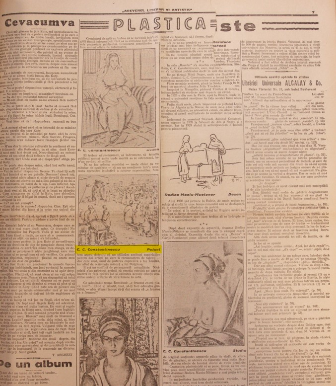 Opera este reprodusă în ”Adevărul Literar și Artistic”, 1930, la pag. 7.