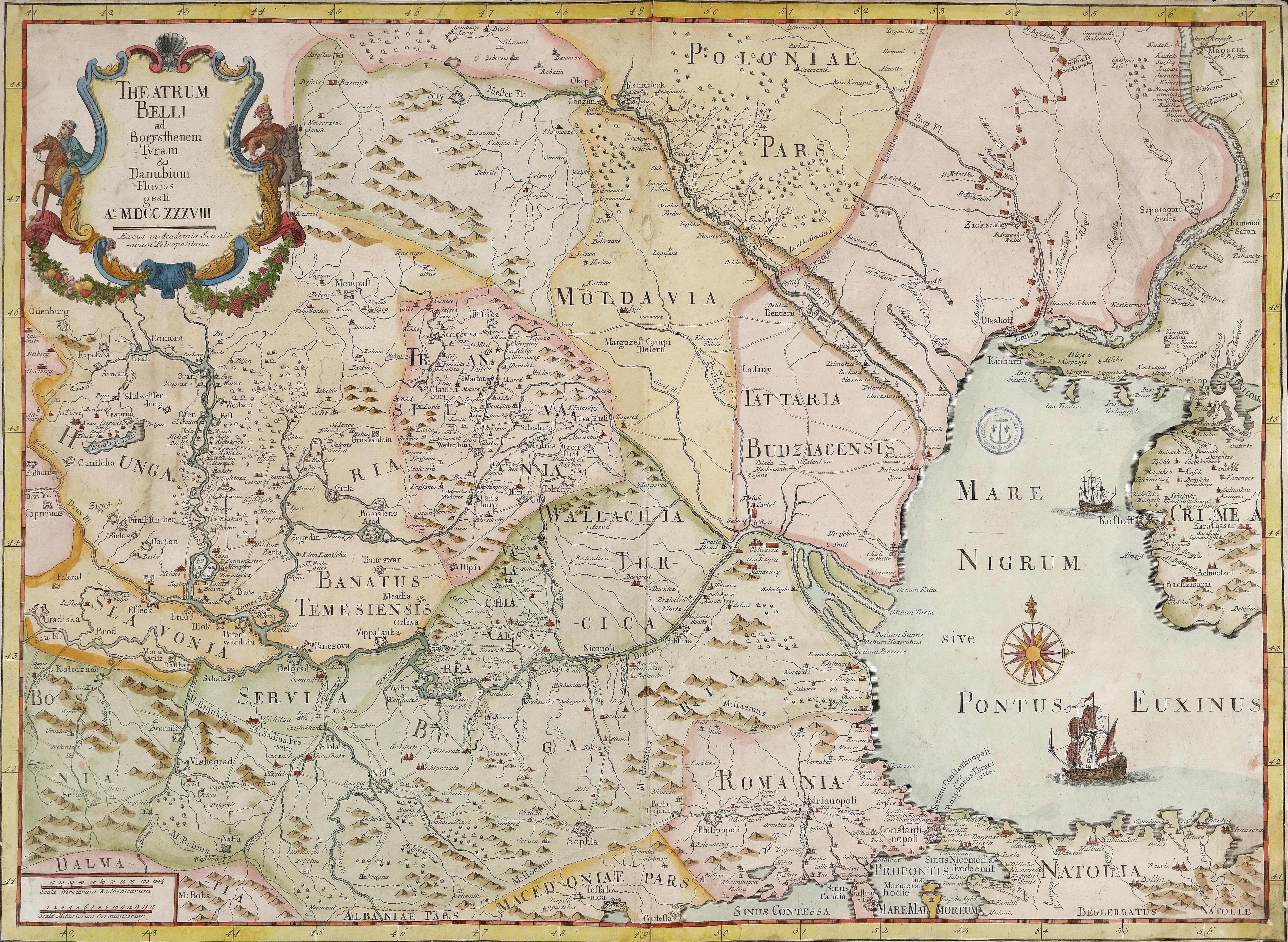 34. Hartă ”Transilvania, Moldova, Valahia și Bulgaria”, de Matthäus Seutter, Augsburg, cca. 1735