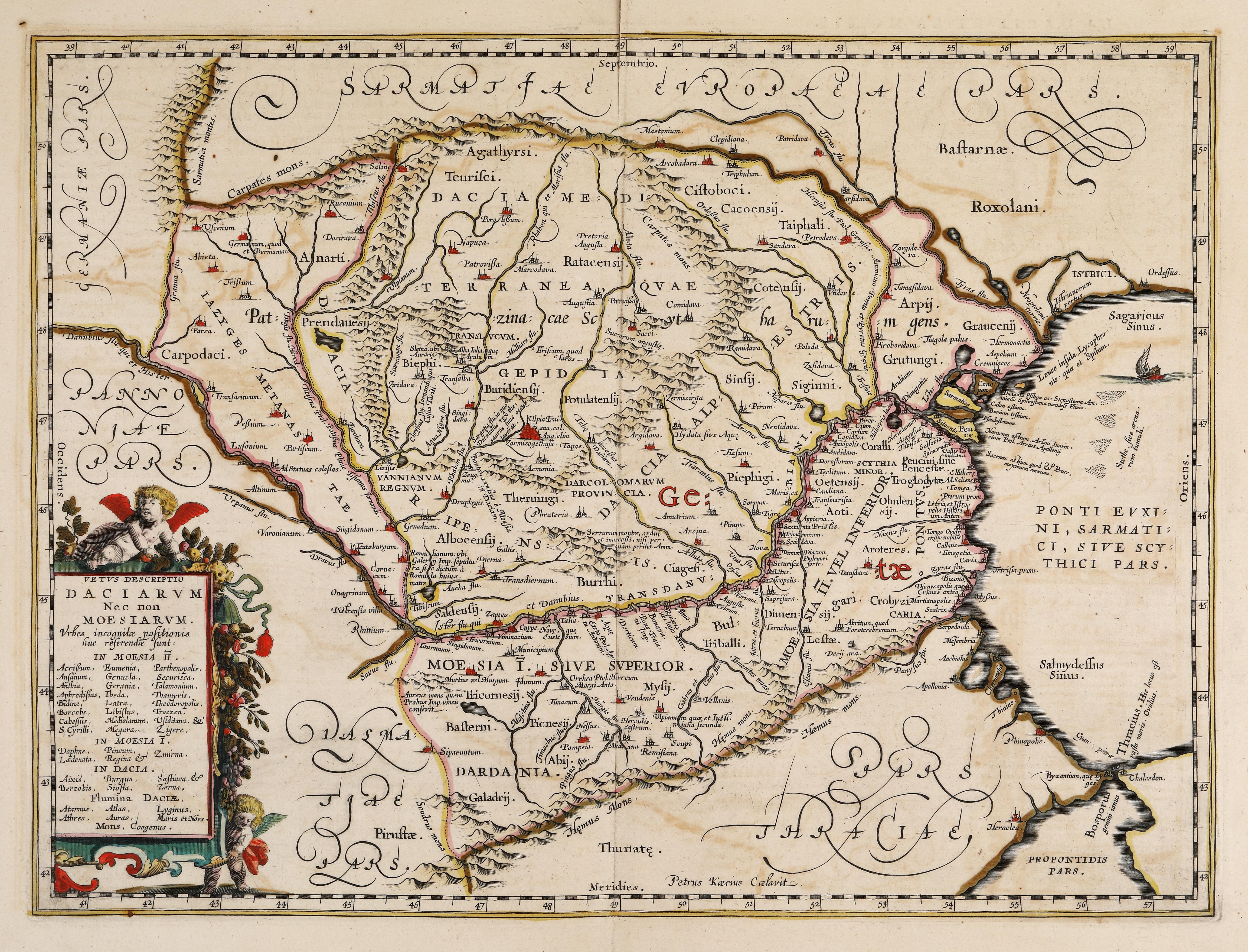 16. Hartă ”Dacia și Moesia”, de Jan Janssonius, Amsterdam, cca. 1650