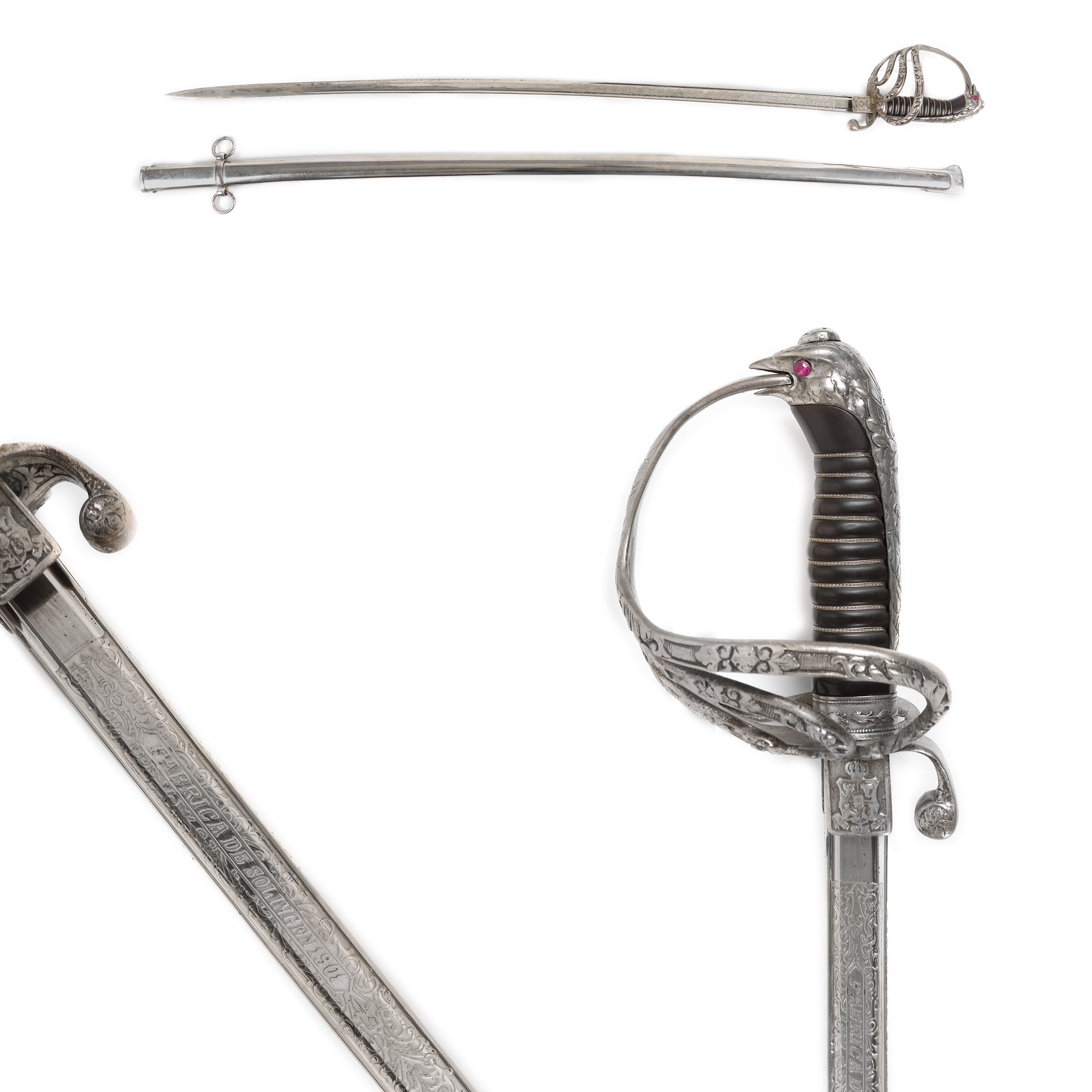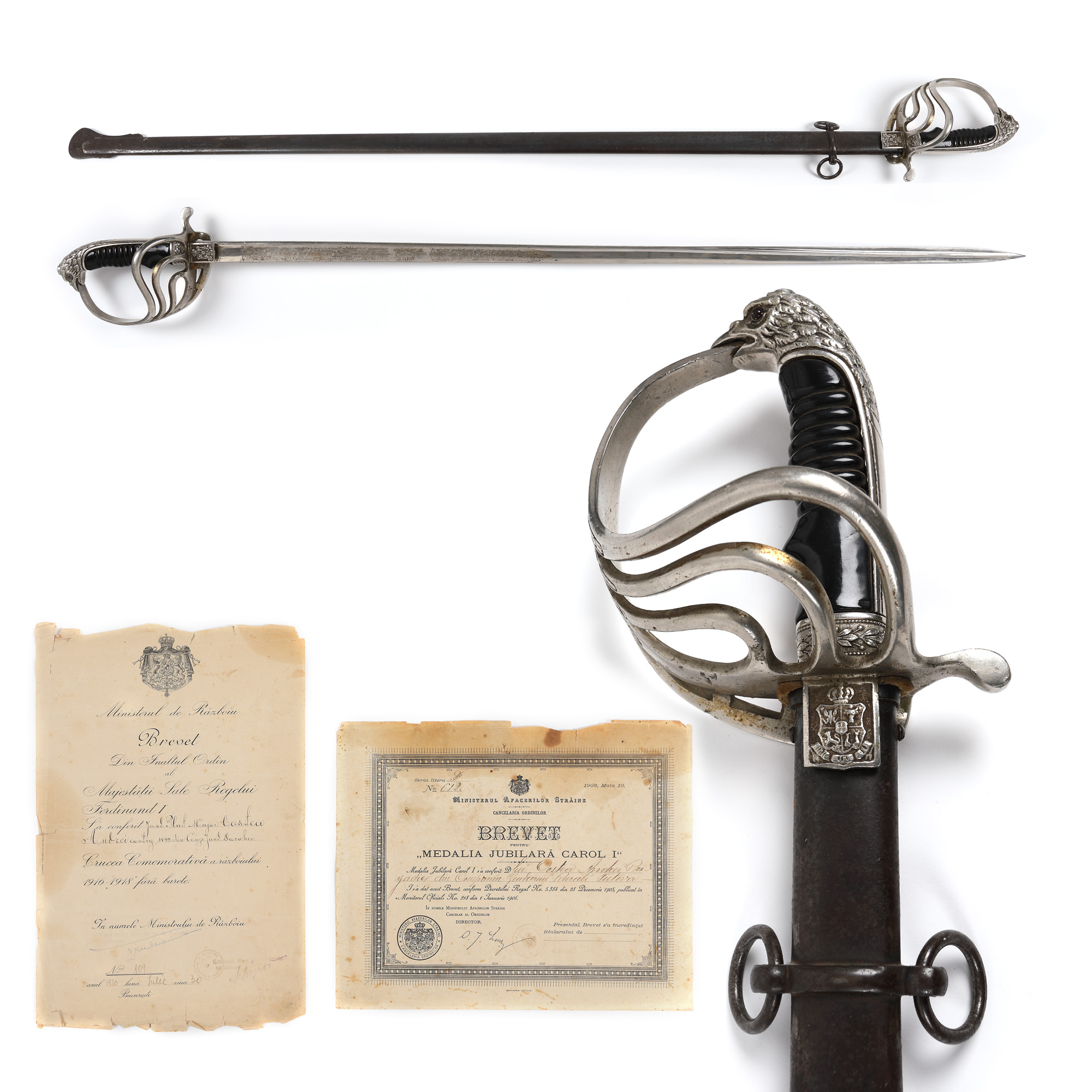 10. Sabie de ofițer, purtând cifrul Regelui Ferdinand, cu teacă