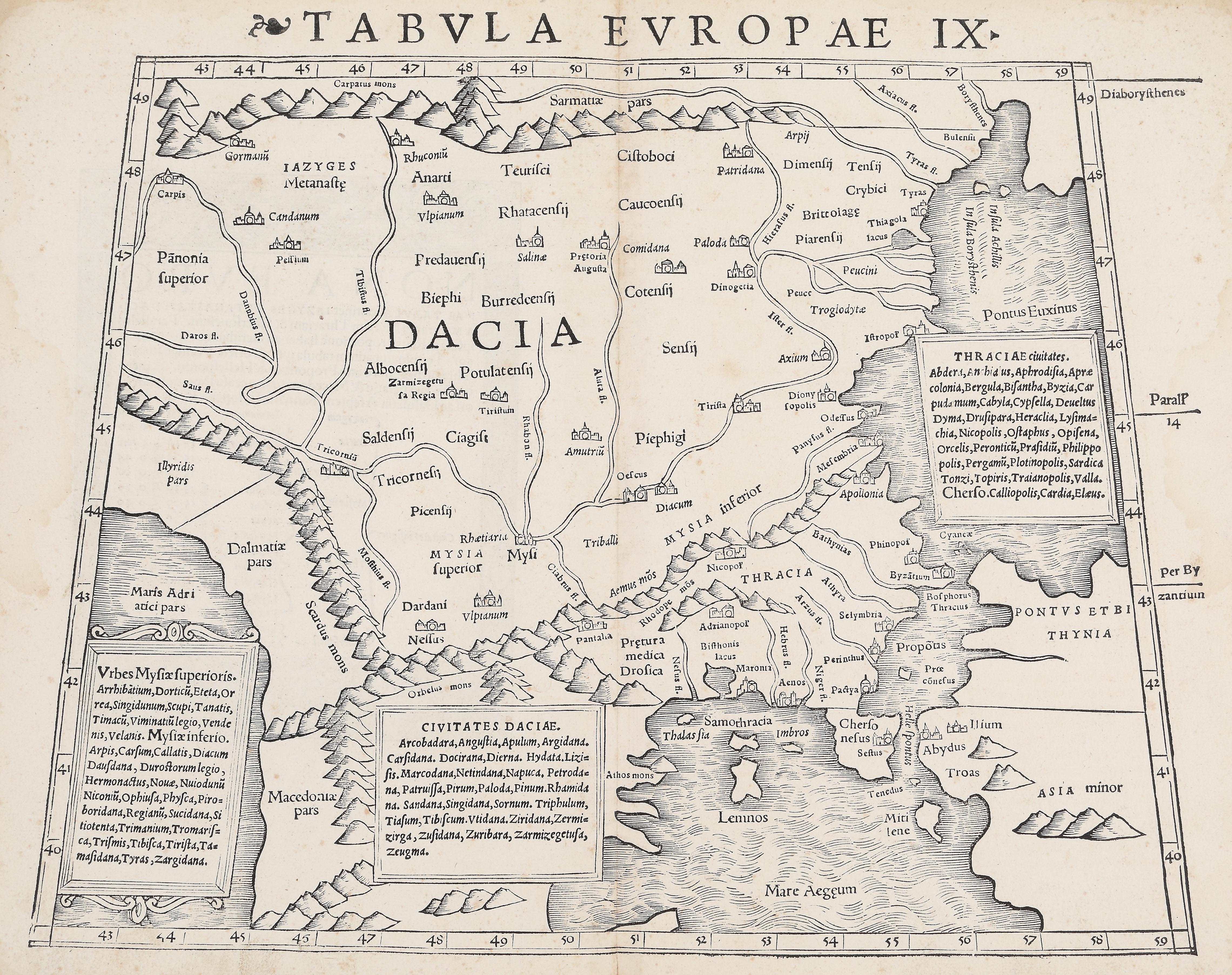 26. Hartă ”Dacia, Tracia și Macedonia”, de Gerardus Mercator, Duisburg, 1578