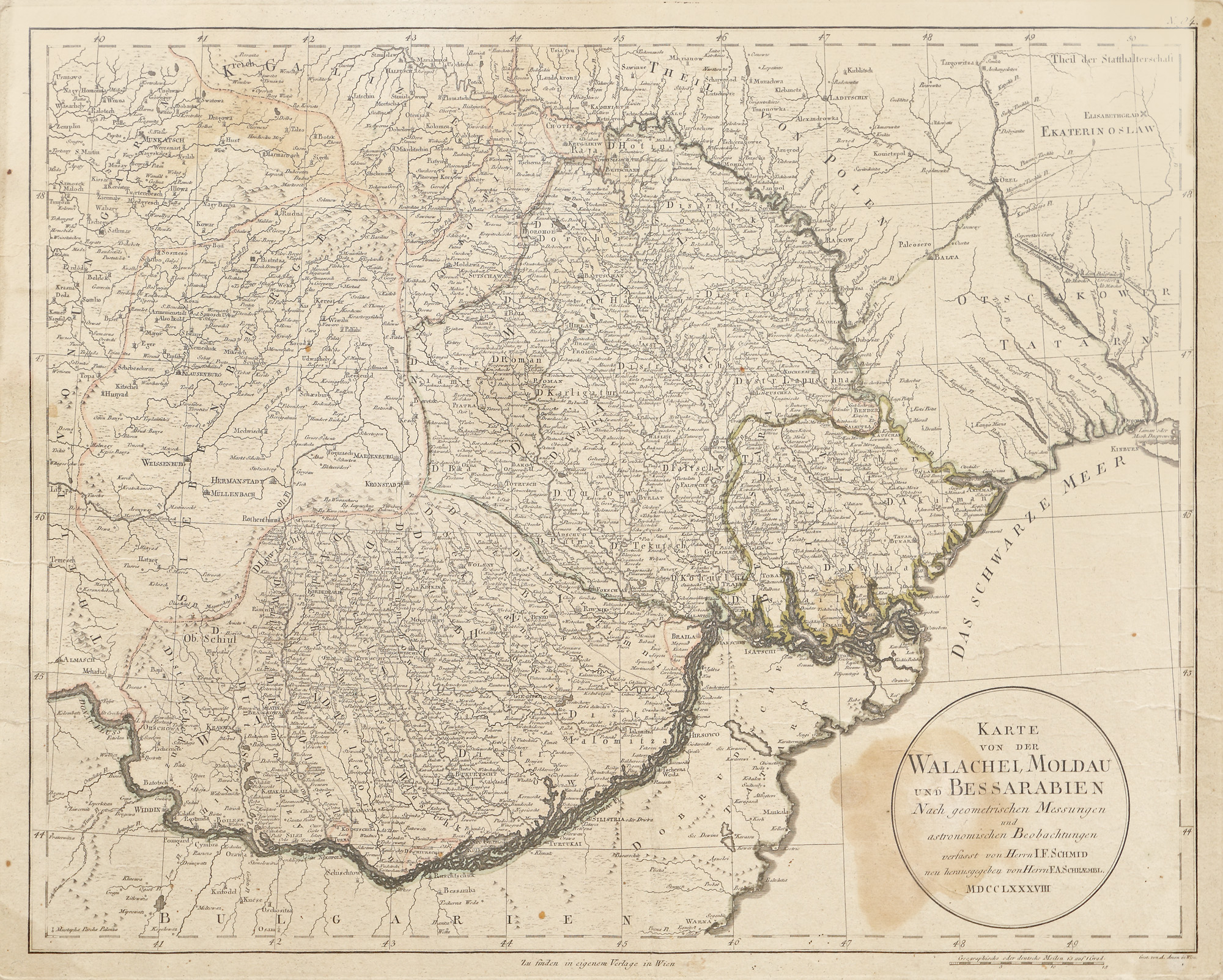 19. Hartă ”Valahia, Moldova și Basarabia”, de Franz Anton Schraembl, Viena, 1788