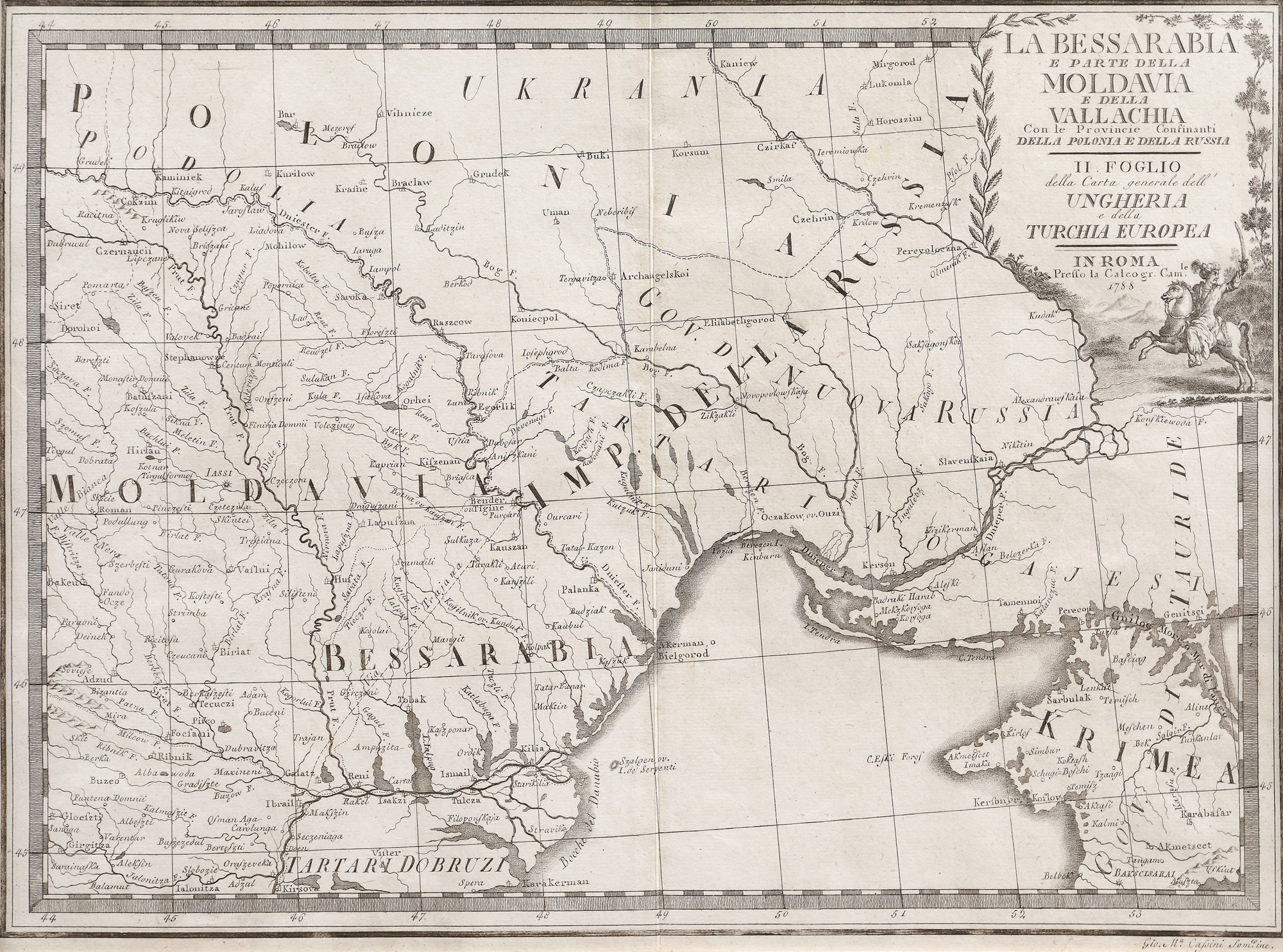 20. Hartă ”Basarabia și părți din Moldova și Valahia”, de Geovanni Maria Cassini, Roma, 1788