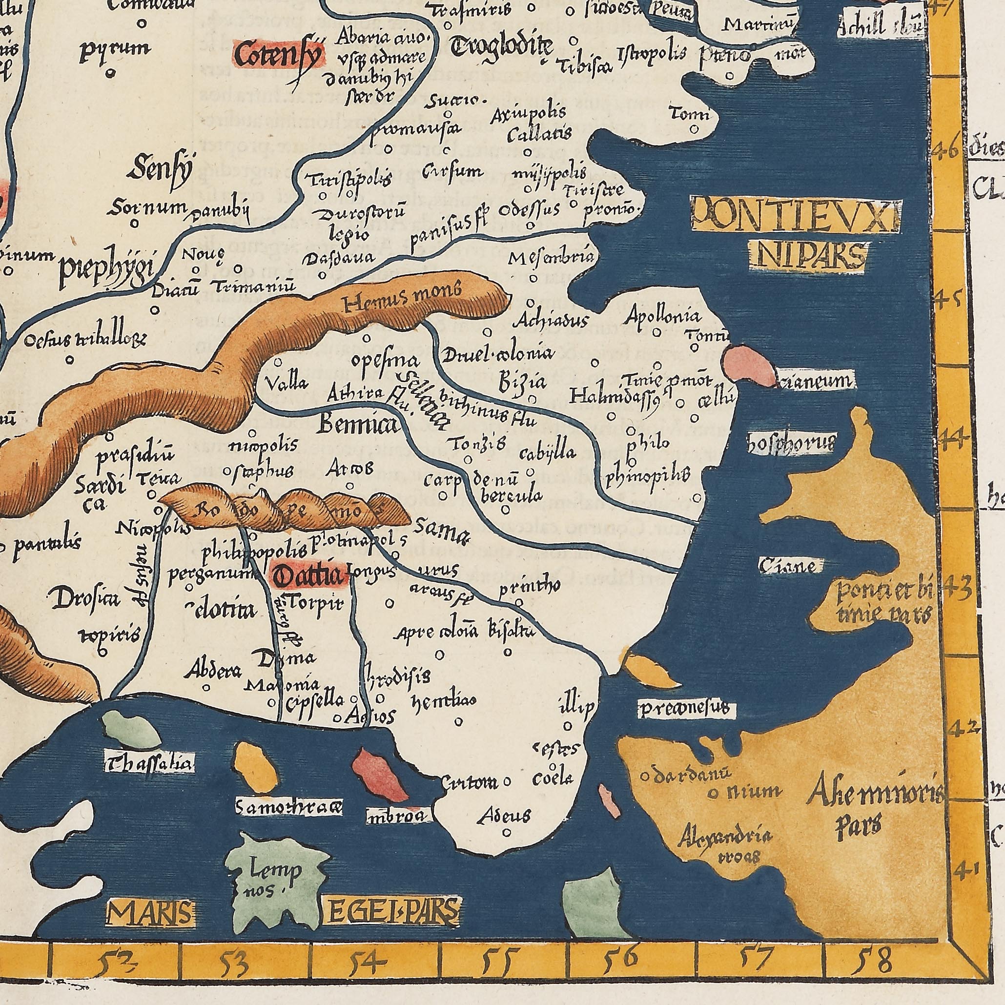 17. Hartă ”Dacia”, de Lorenz Friez, după "Geografia lui Ptolemeu", Viena, 1541, piesă foarte rară, de colecție