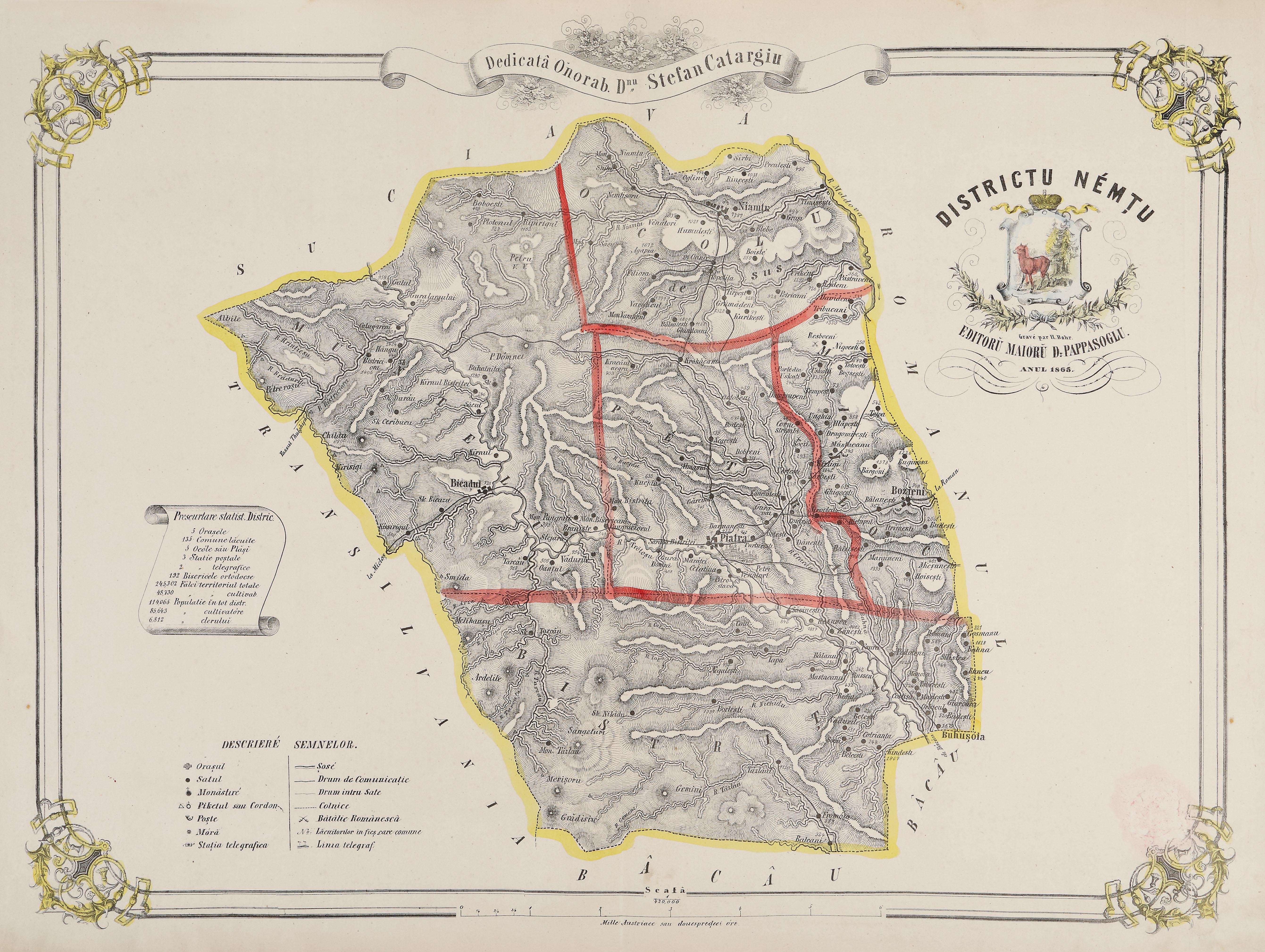 48. Hartă ”Districtul Neamț”, de Dimitrie Papazoglu, București, 1865, piesă foarte rară