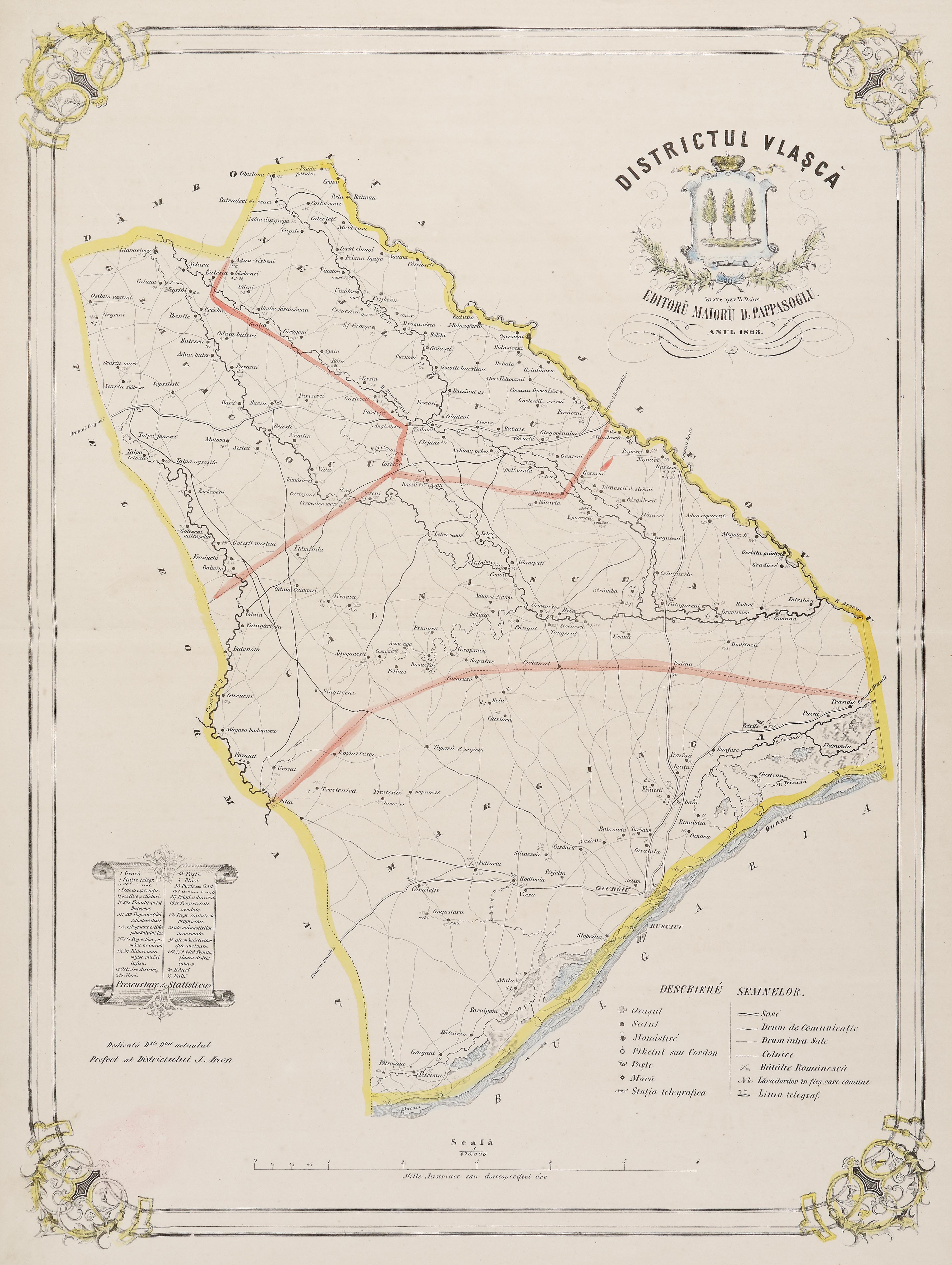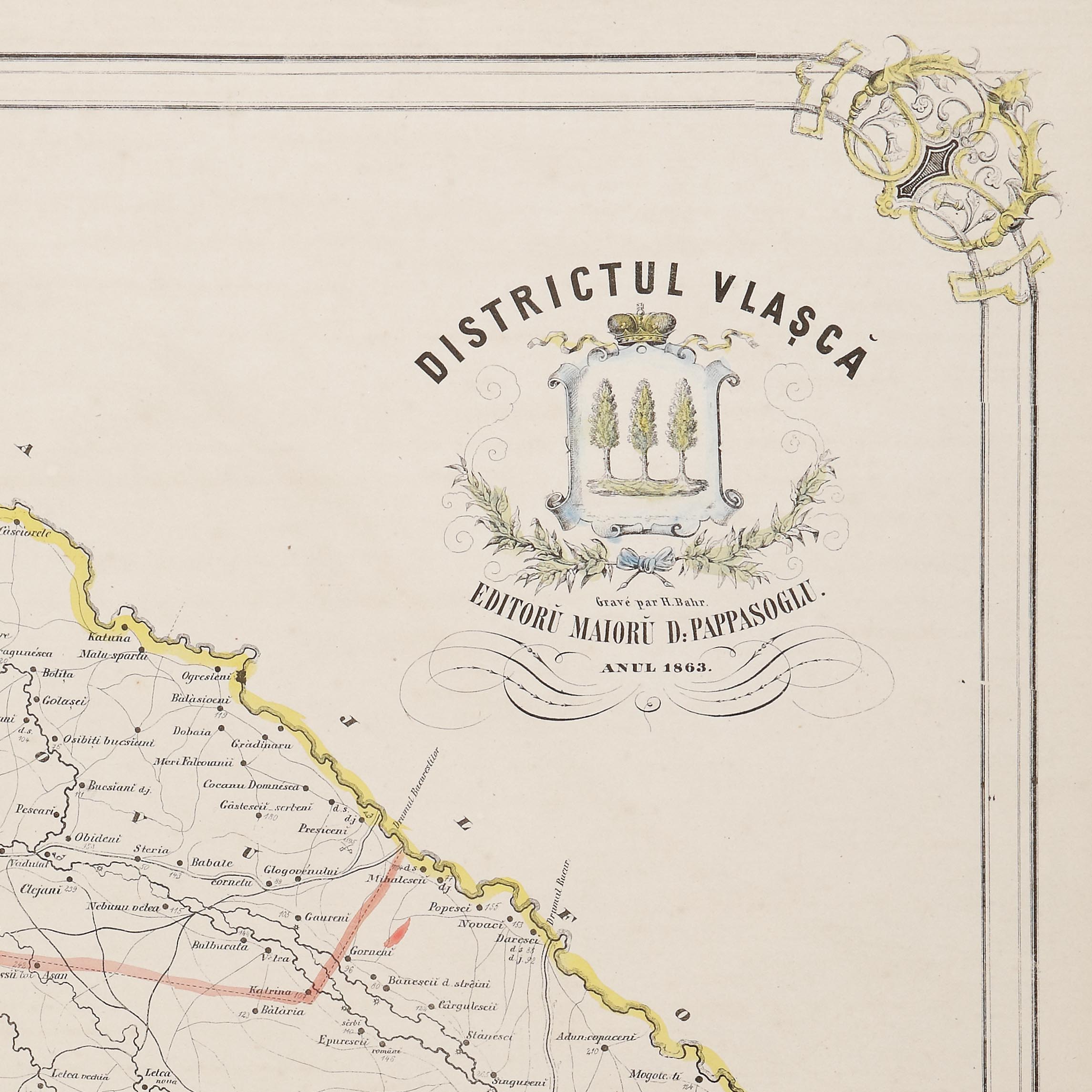 49. Hartă ”Districtul Vlașcă”, de Dimitrie Papazoglu, București, 1863, piesă foarte rară
