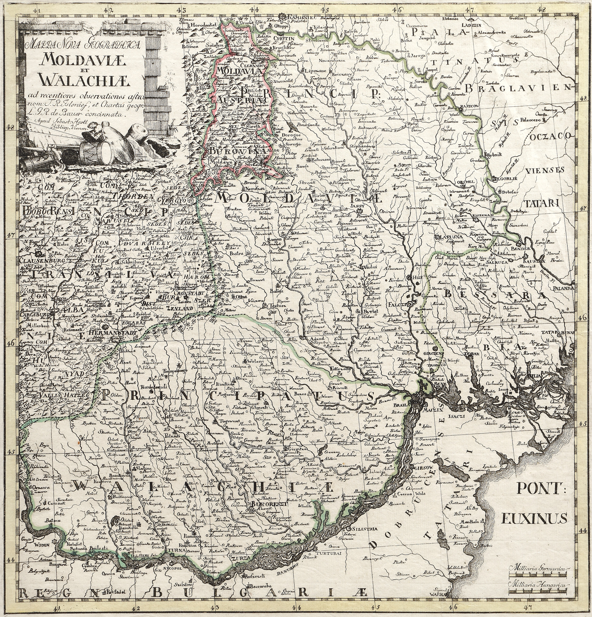 43. Hartă ”Moldova și Valahia”, de Sebastian Hartl, Viena, 1780