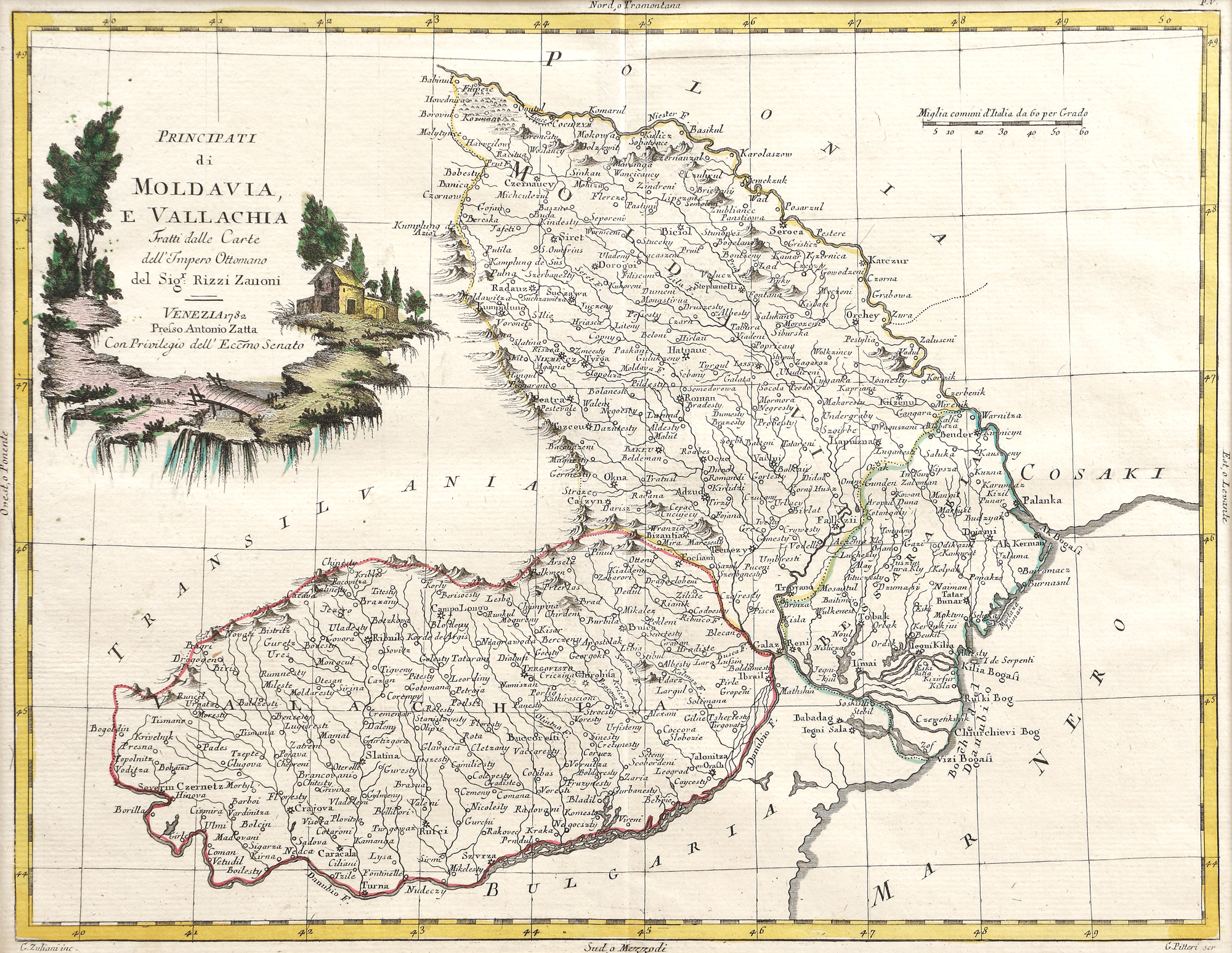42. Hartă ”Principatele Moldova și Valahia”, de Rizzi Zanoni, Veneția, 1782