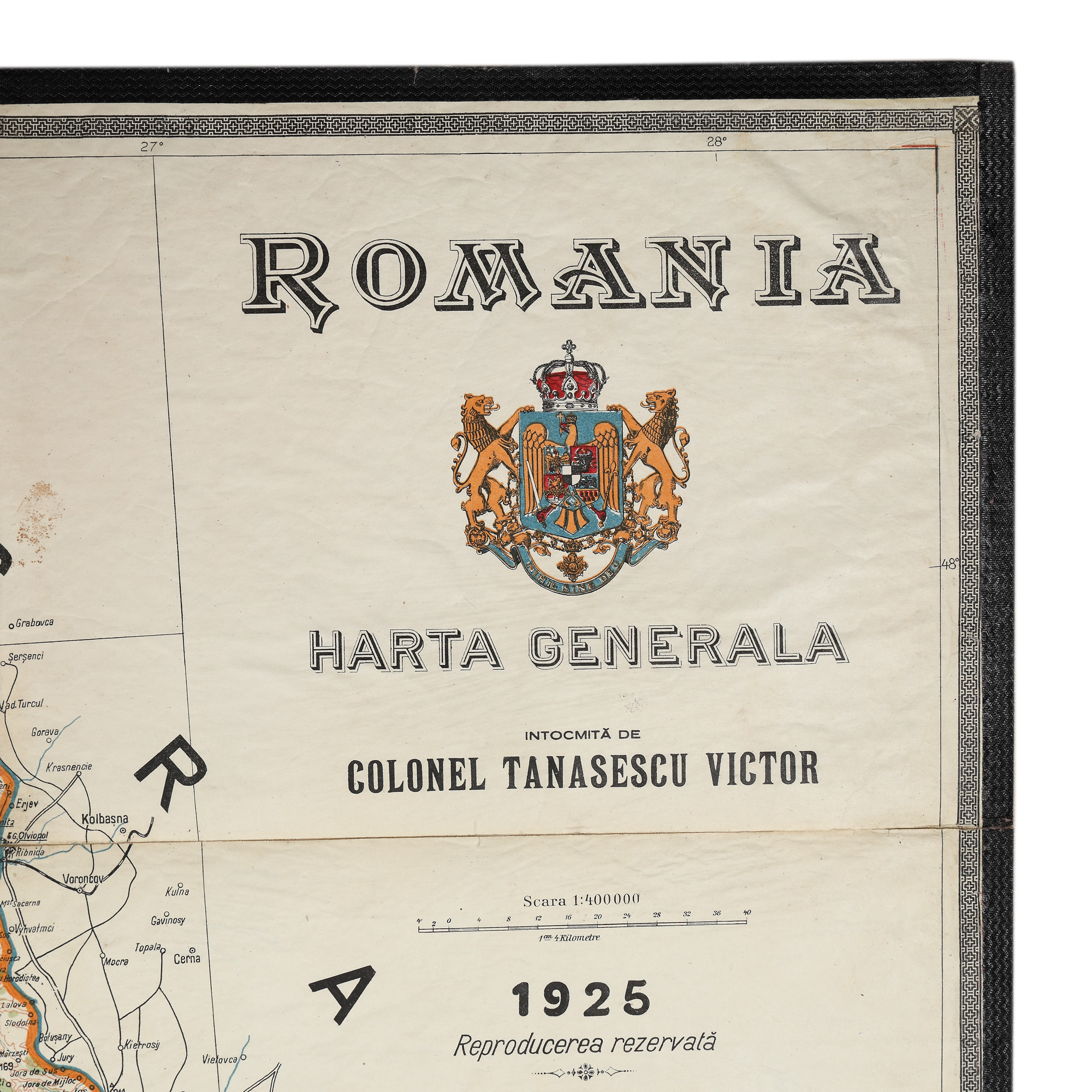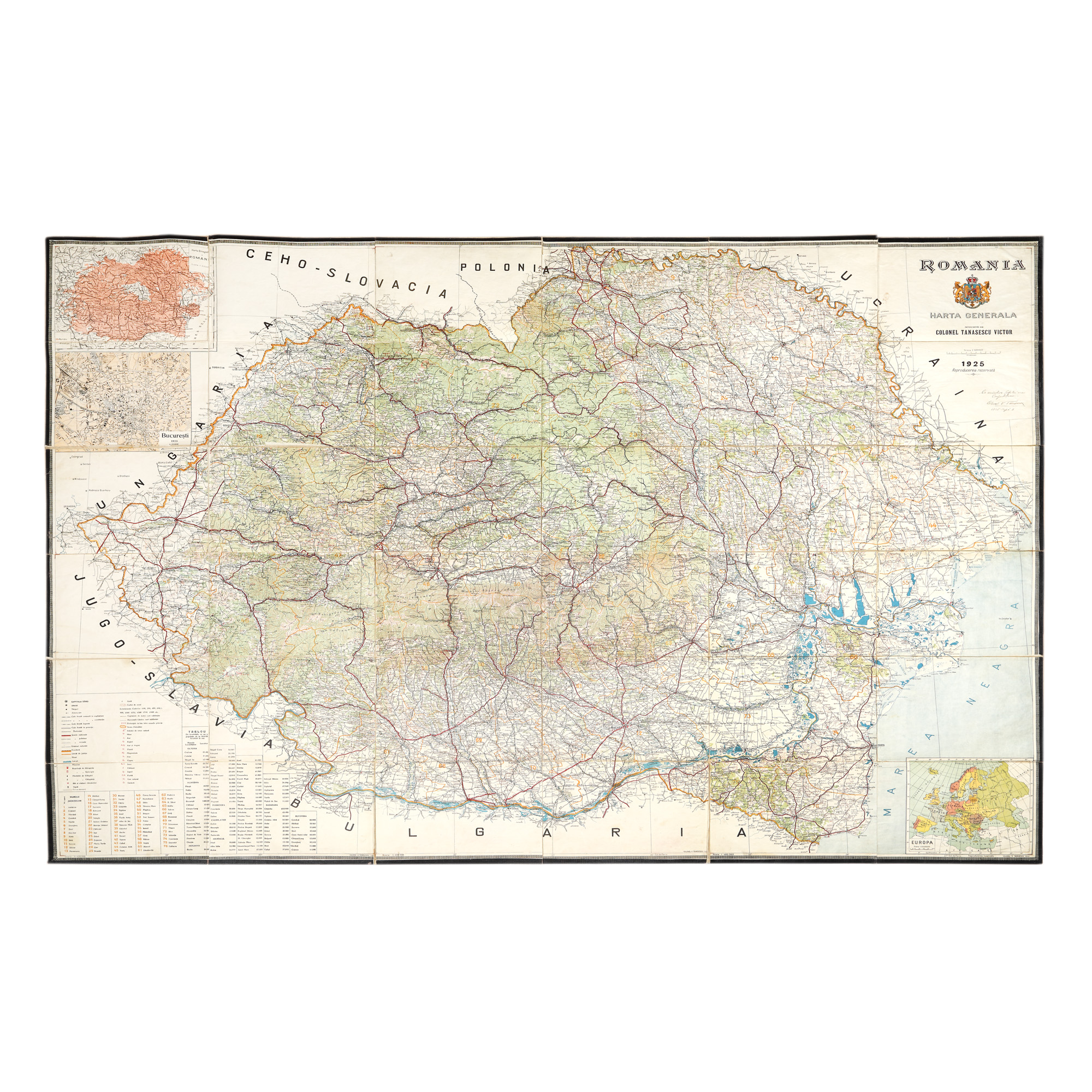 45. Hartă ”România Mare”, de colonel Victor Tănăsescu, 1925, cu dedicația autorului și etui