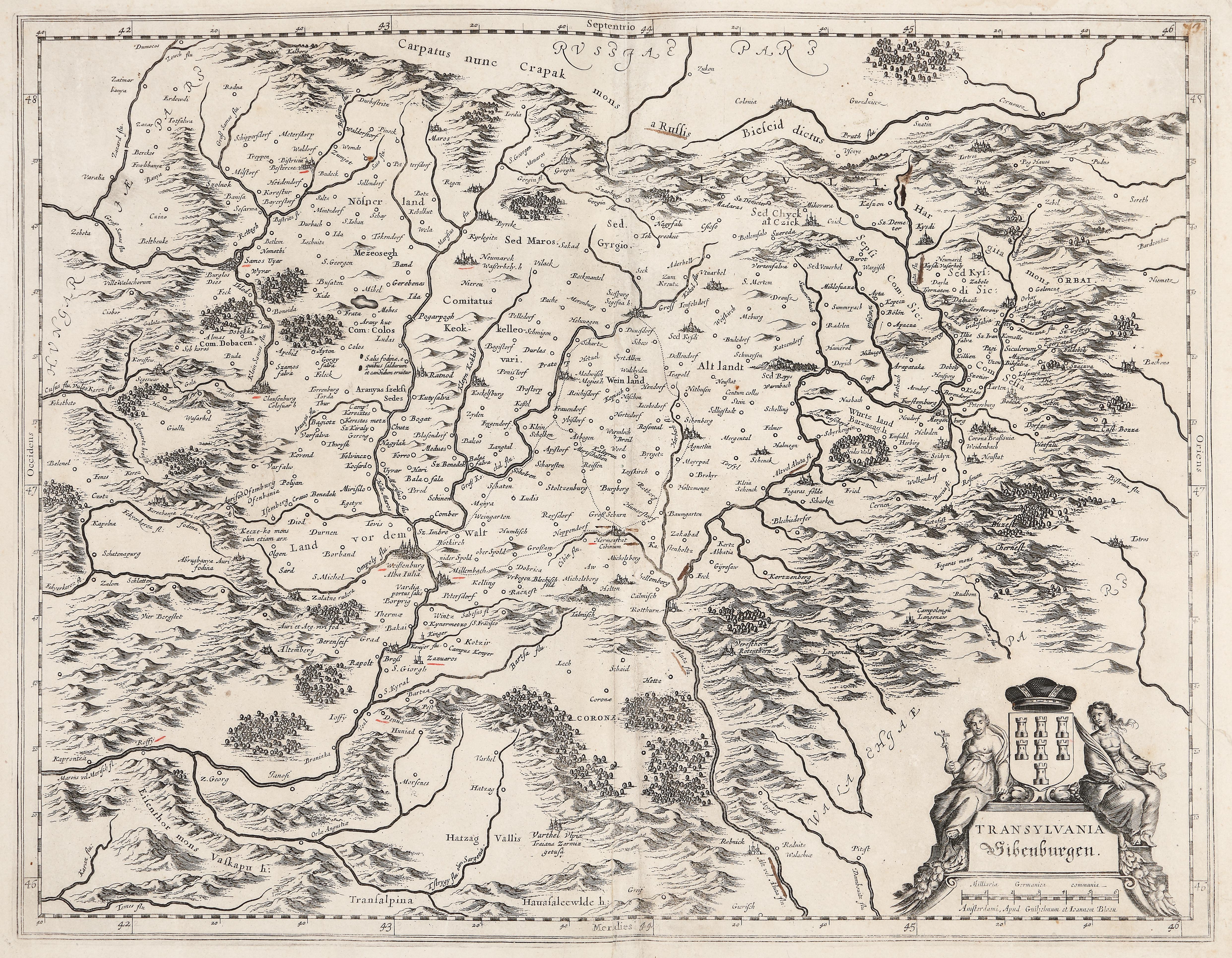 40. Hartă ”Transilvania”, de Willem Janszoon Blaeu, Amsterdam, cca. 1660, piesă extrem de rară, de colecție