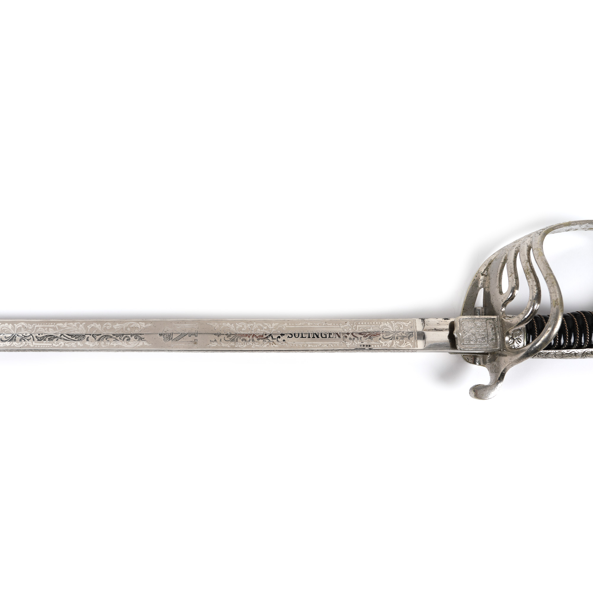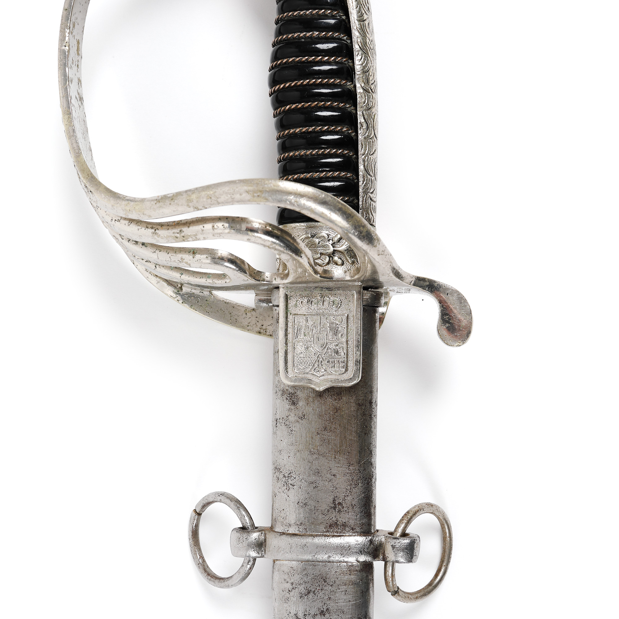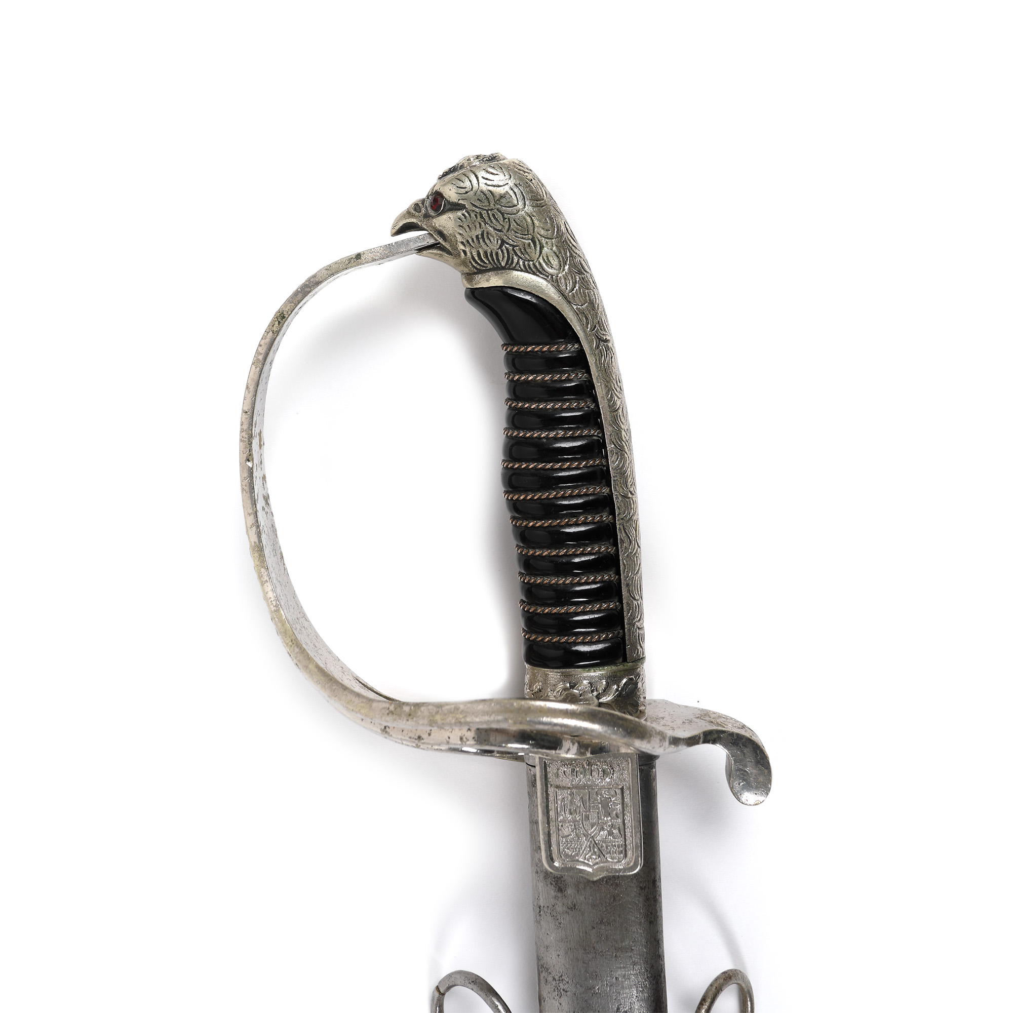 12. Sabie de ofițer, purtând cifrul Regelui Mihai I, cu teacă