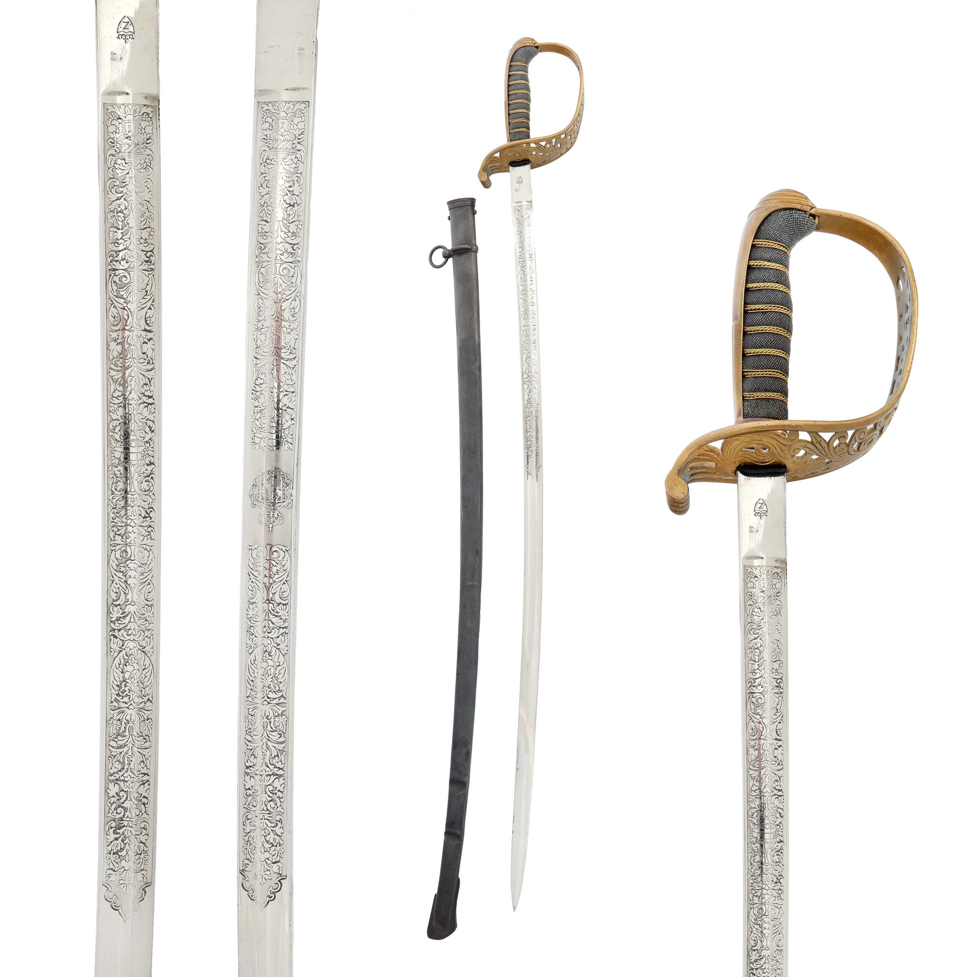 36. Sabie de ofițer de infanterie, cu teacă, lama gravată, Bavaria, perioada Primului Război Mondial