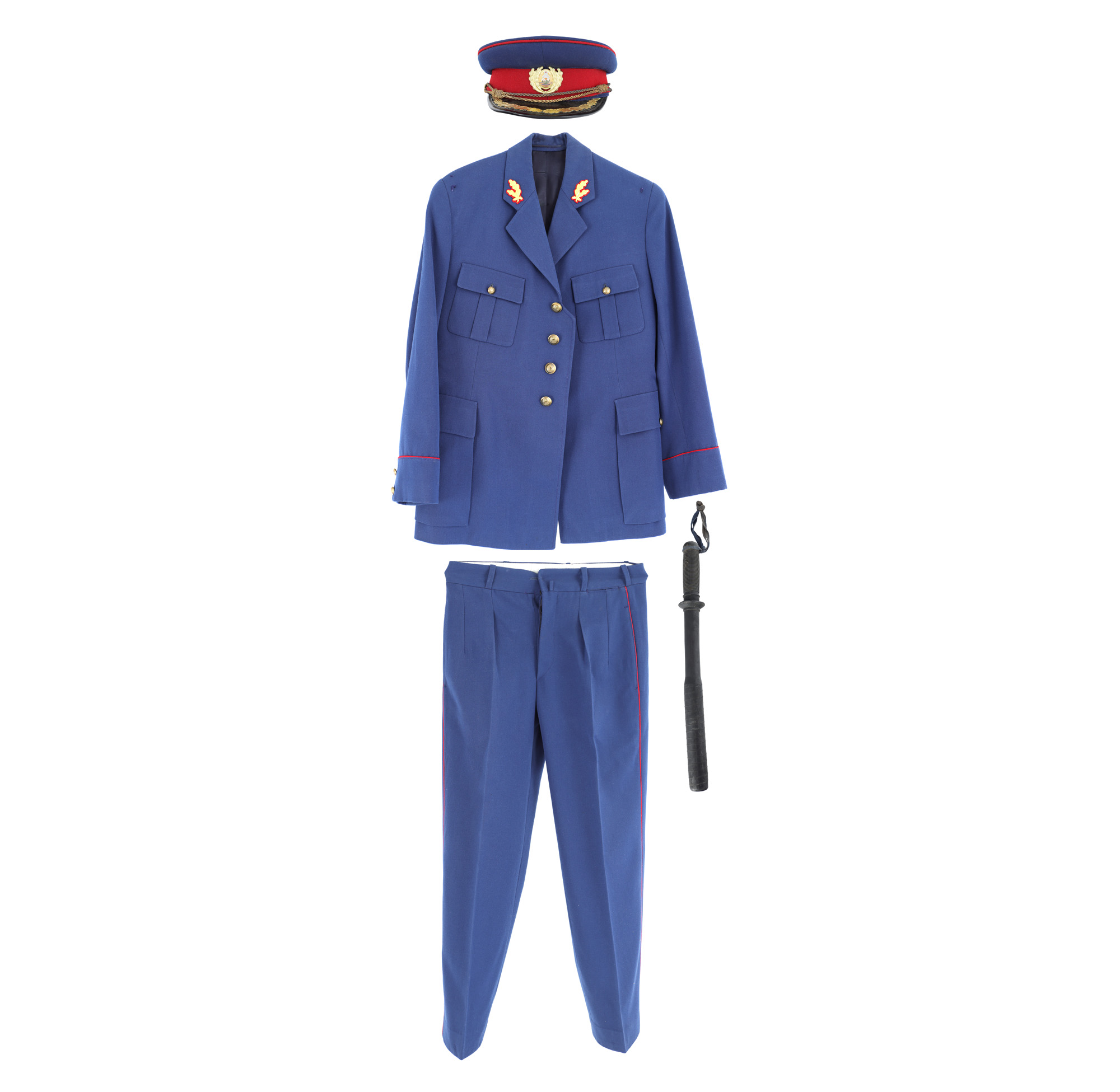 12. Lot format din uniformă ofițer de miliție și baston de cauciuc, cca. 1982