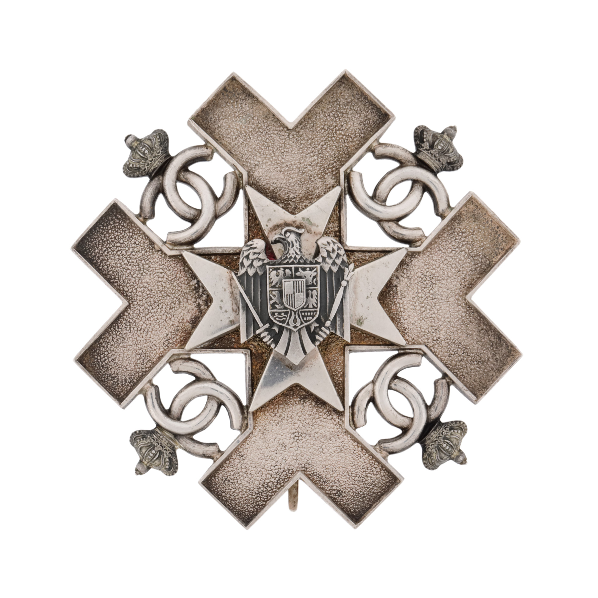 61. Ordinul „Meritul Străjeresc”, clasa a II-a, argint, design Joseph Resch fiul, perioada interbelică
