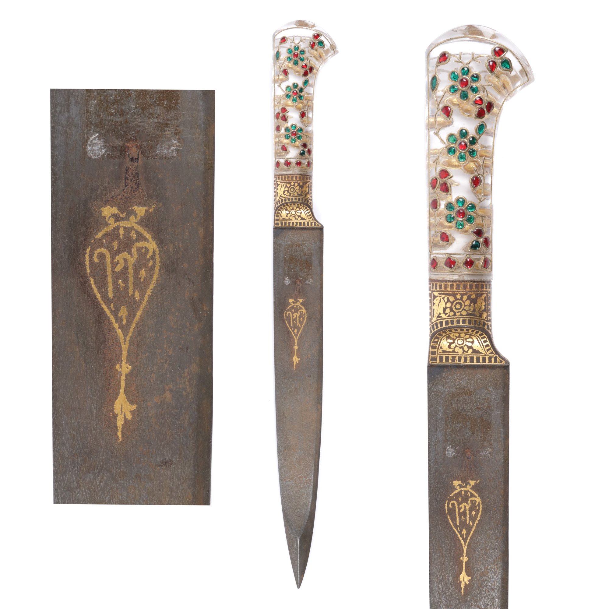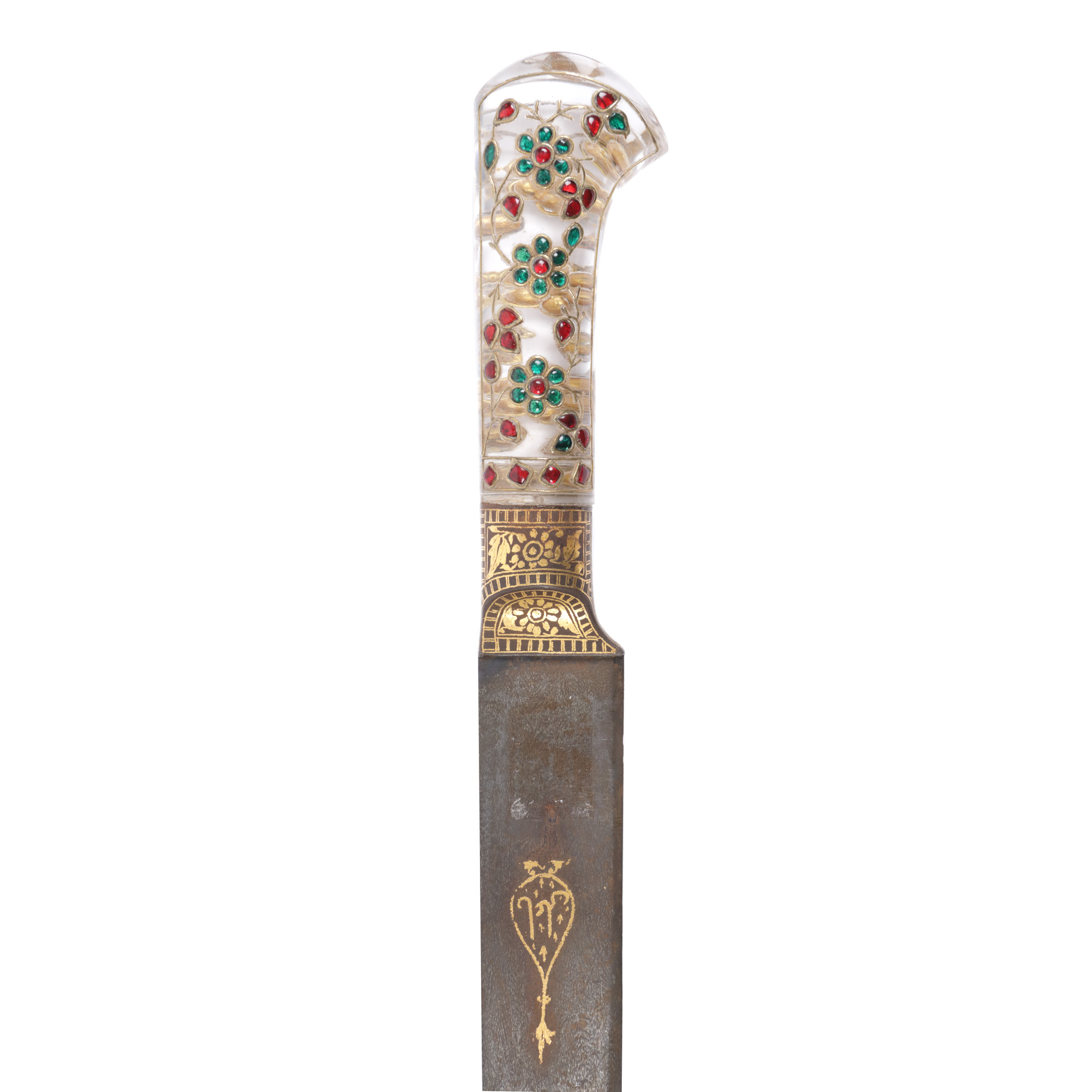 56. Pumnal Kard, cu mânerul din cristal de rocă, lama și mânerul intarsiate cu aur, Rajasthan, India, sfârșitul sec. XIX