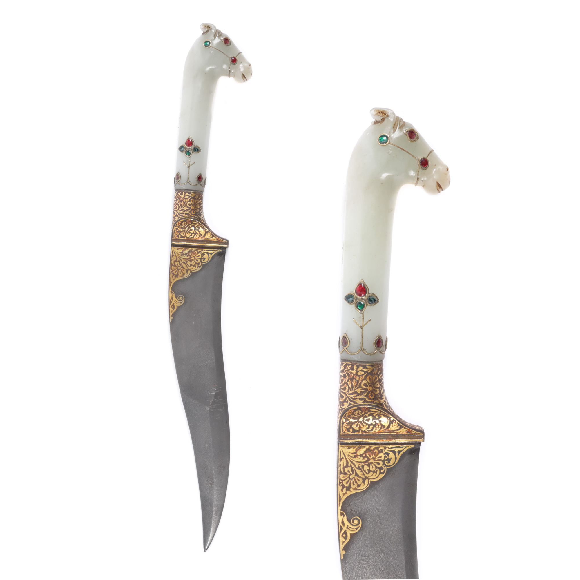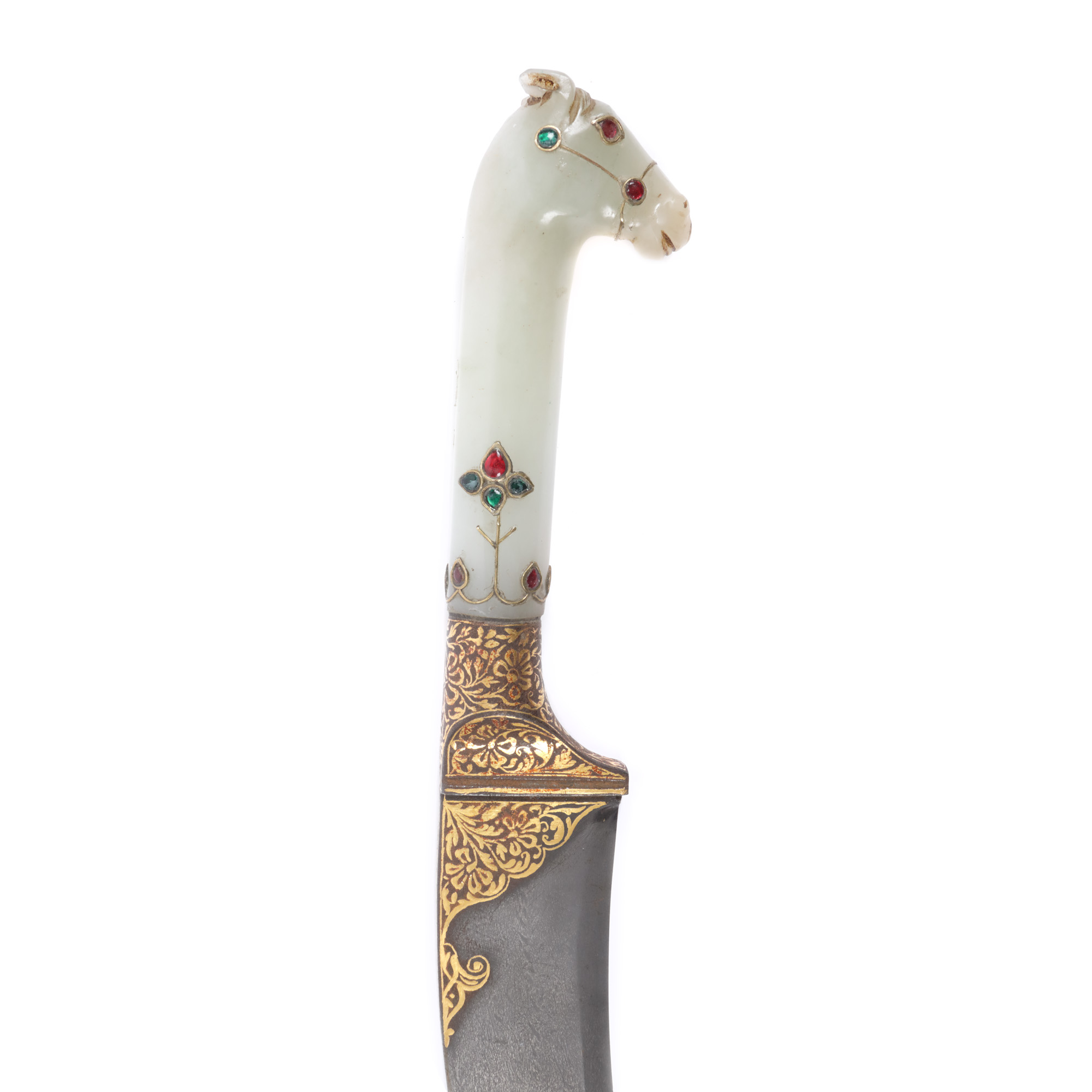 55. Pumnal Khanjar, cu mânerul din jadeit, în formă de cap de cal, India, sfârșitul sec. XIX