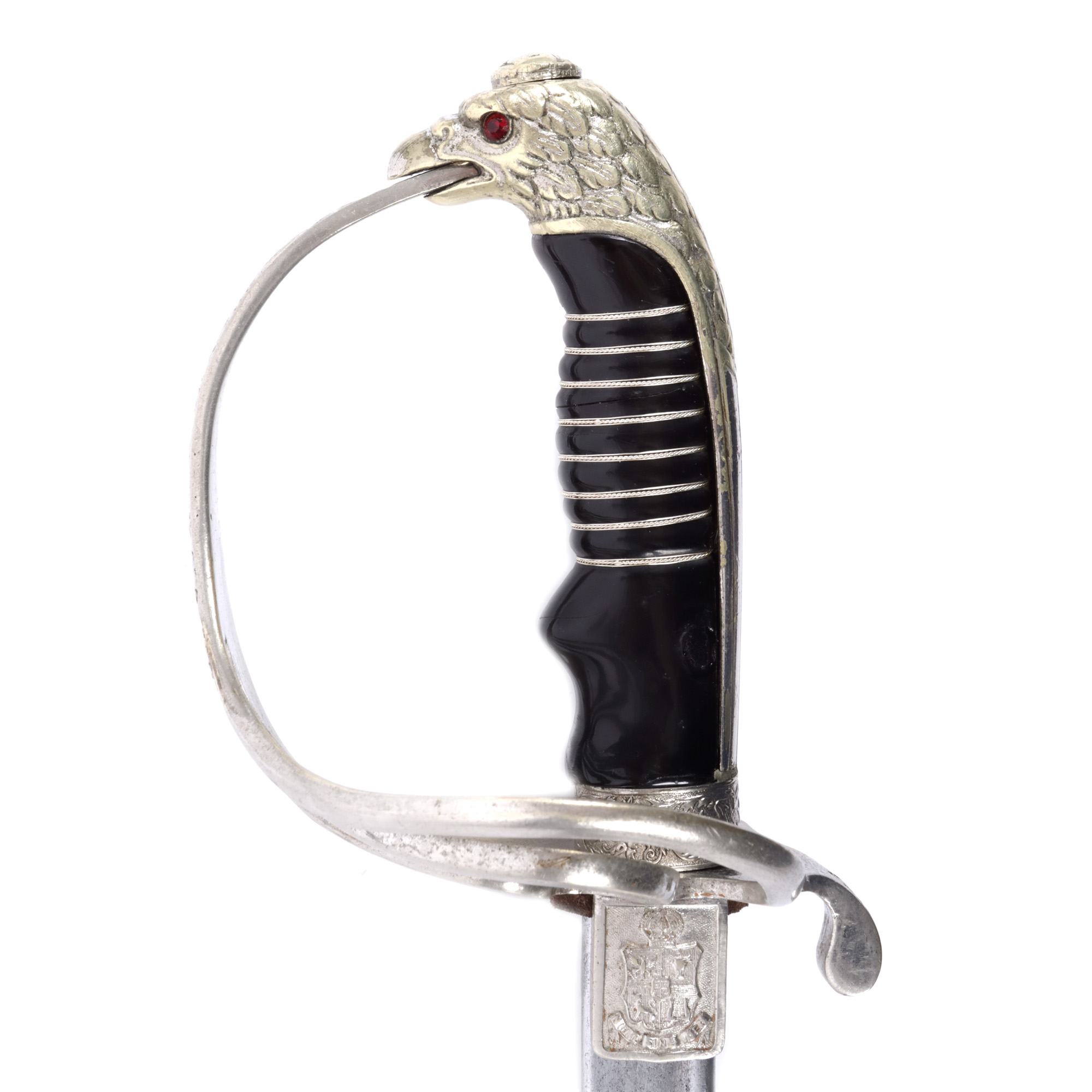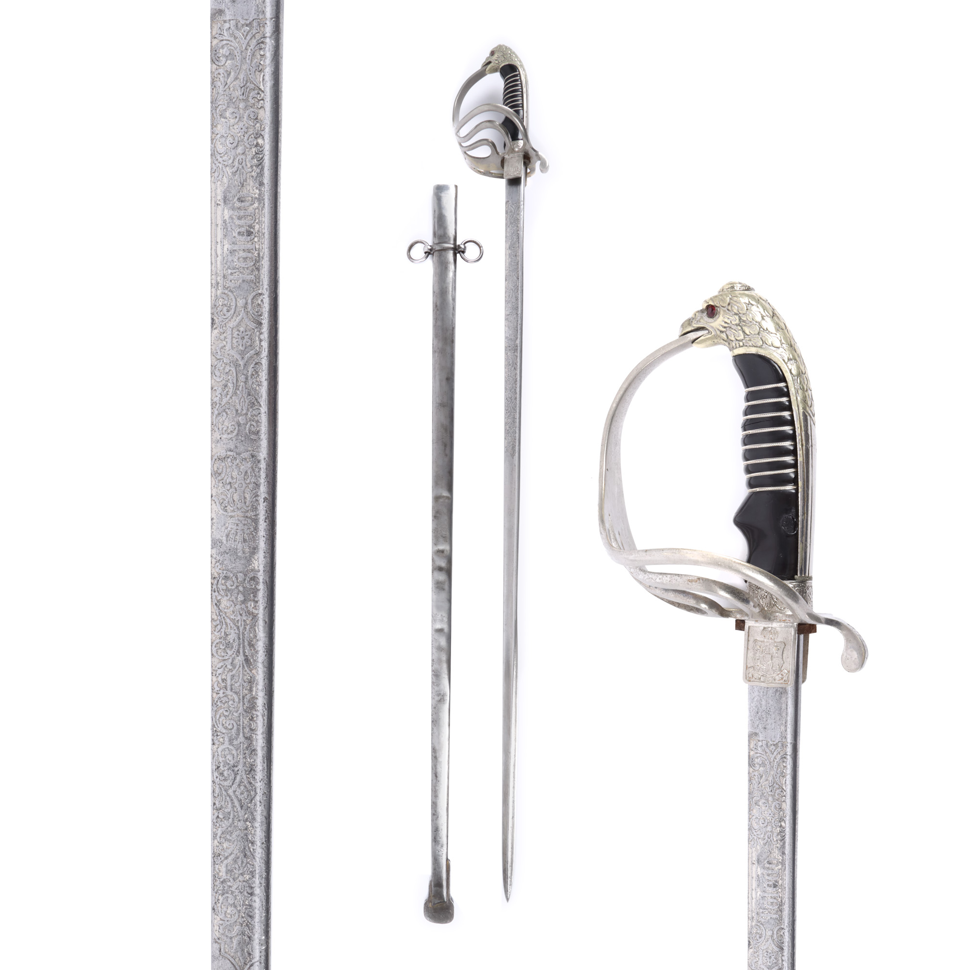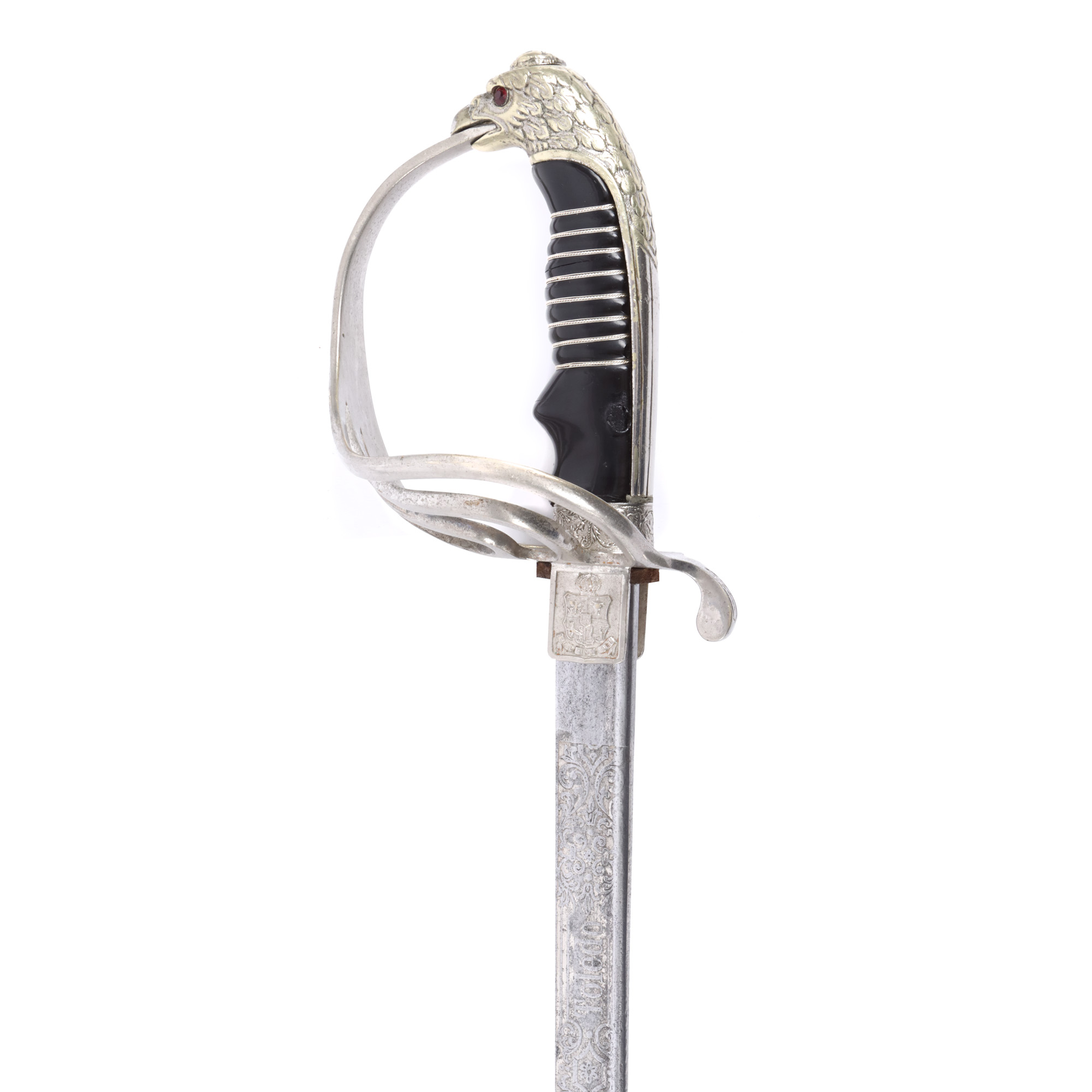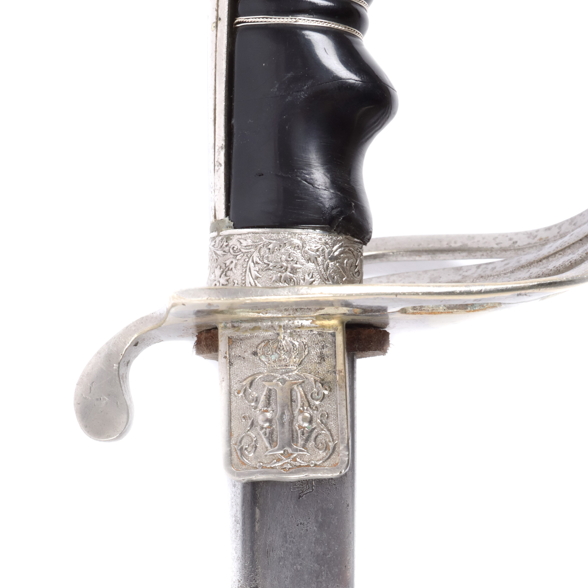 60. Sabie de ofițer, cu cifrul Regelui Carol I, cu teacă, începutul sec. XX