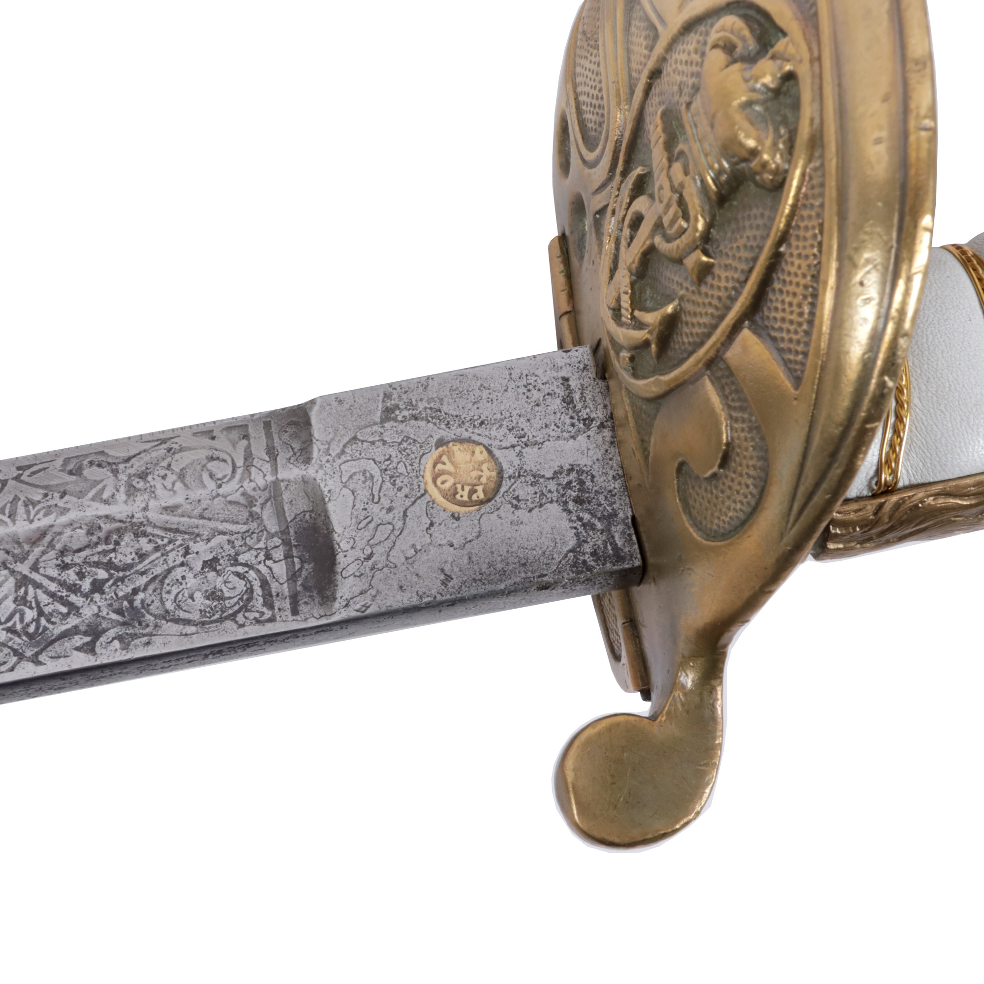 oțel, alamă, piele