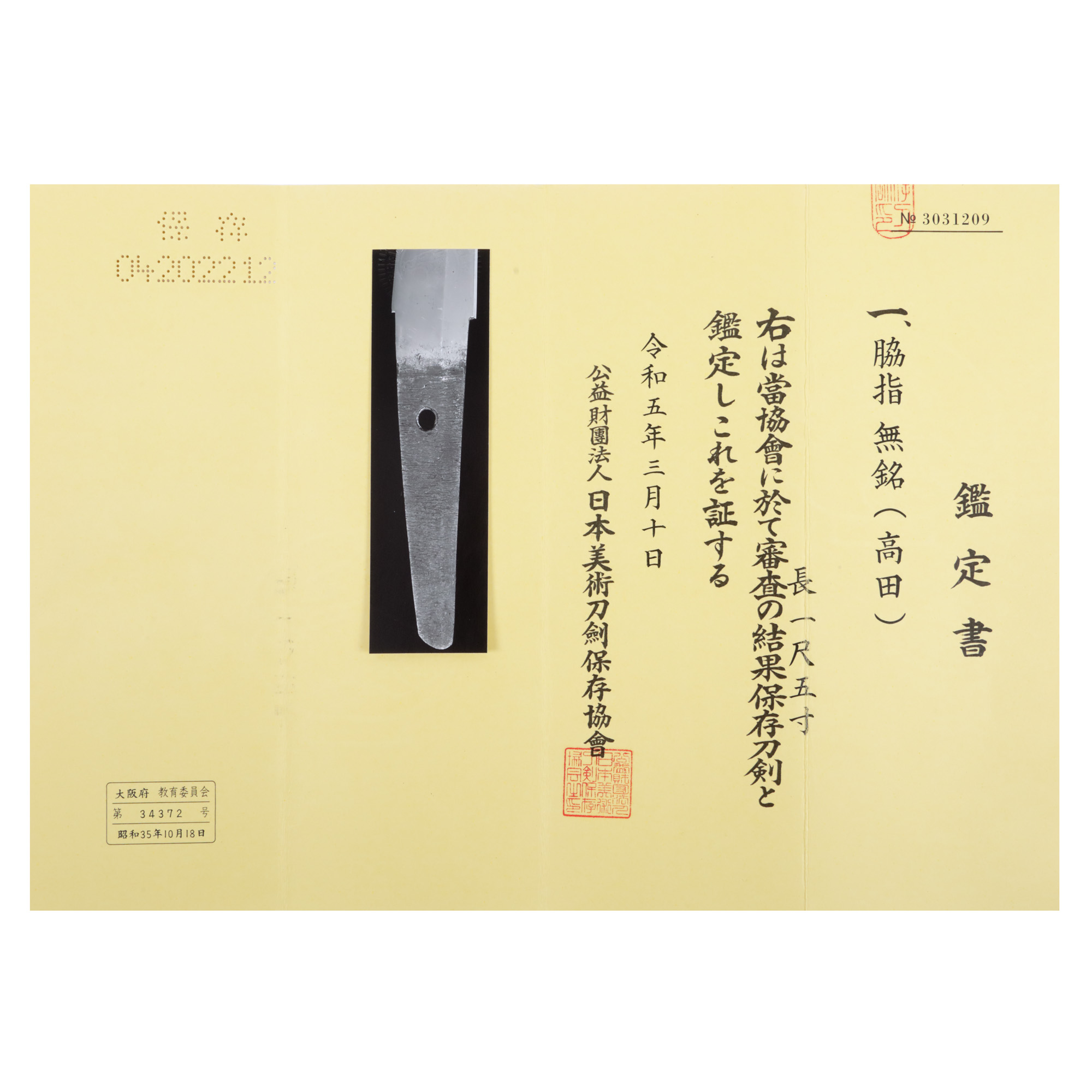 26. Sabie Wakizashi, de Takada, perioada Edo, cca. 1600-1868, certificată NBTHK