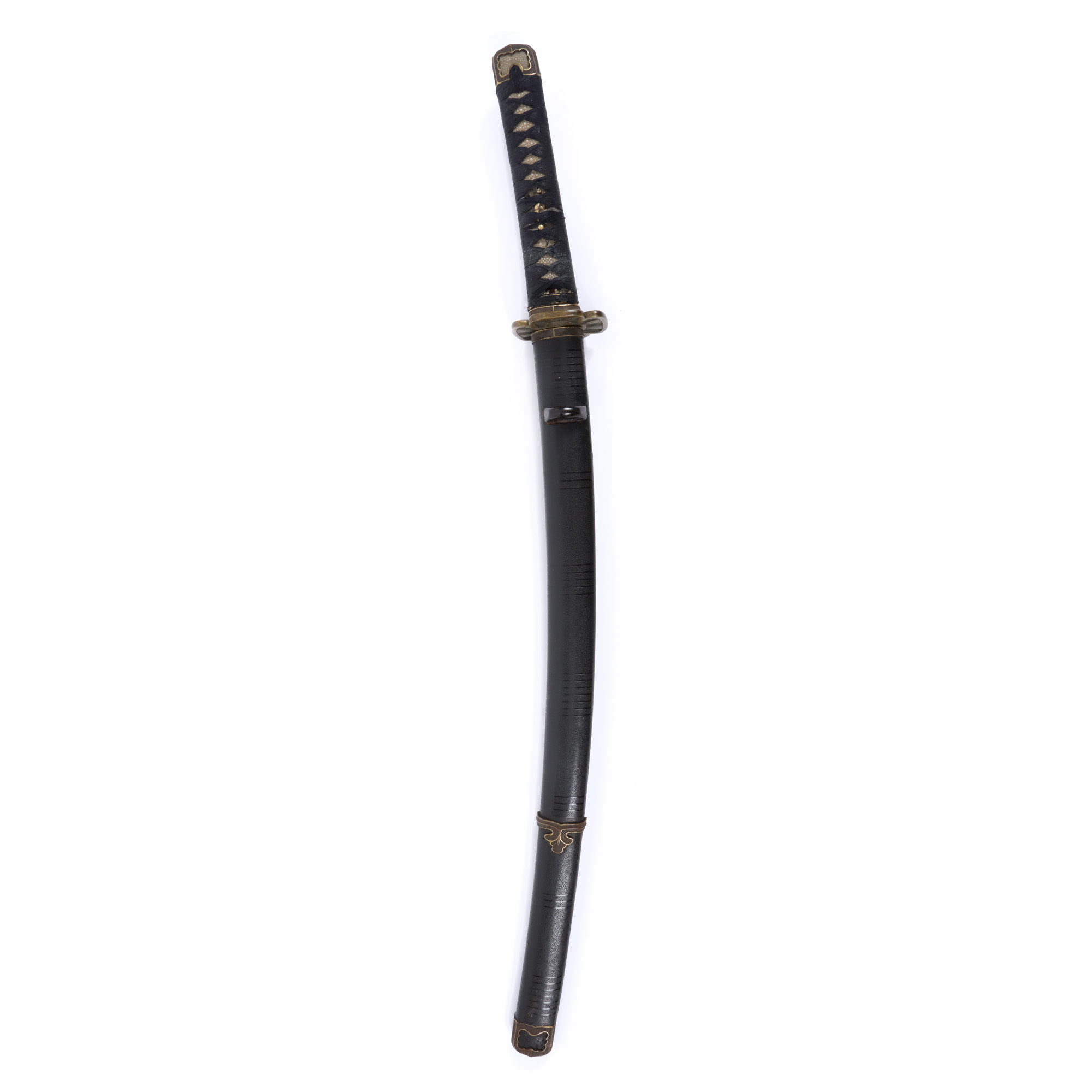 oțel tamahagane, piele de pisică de mare, alamă, material textil, lemn lăcuit