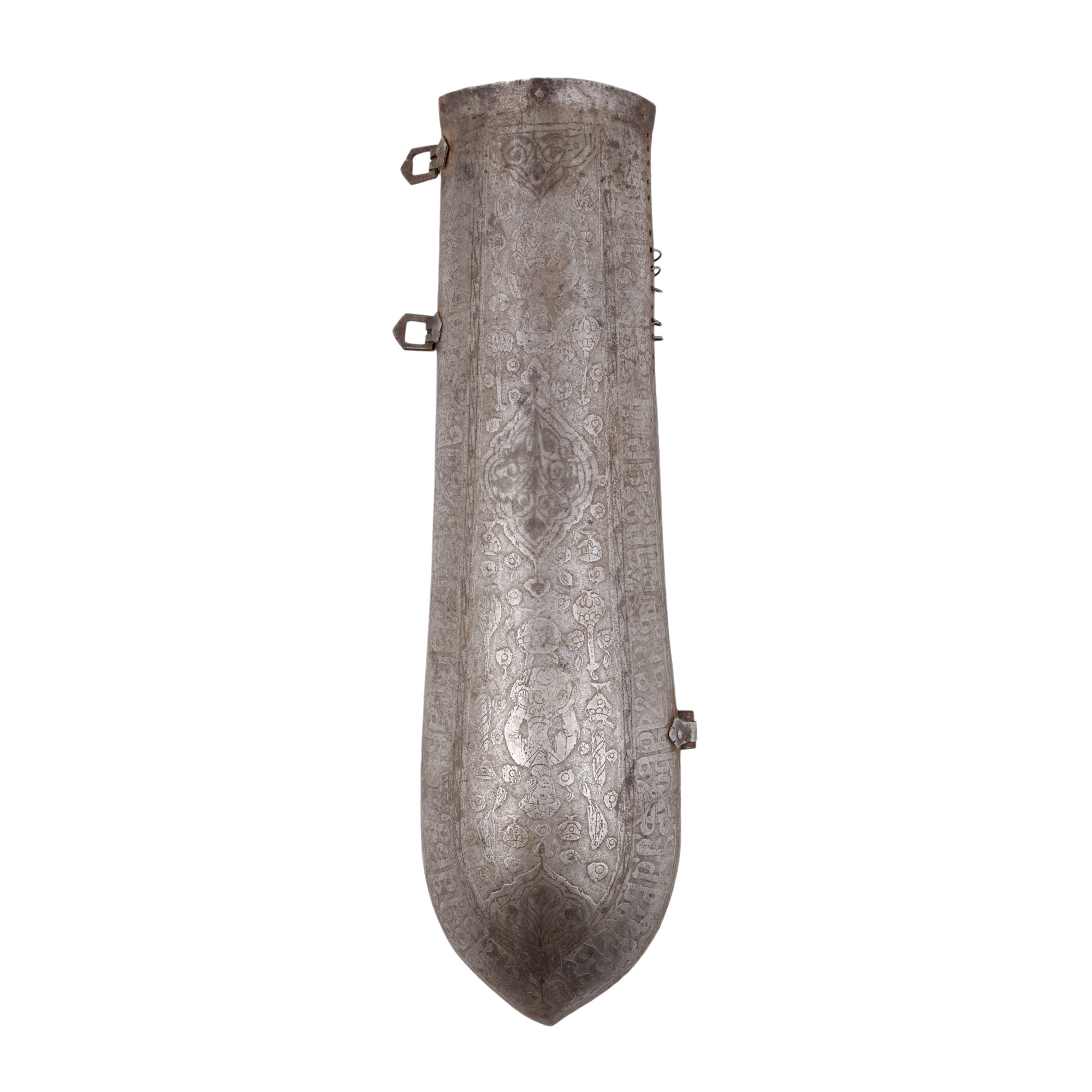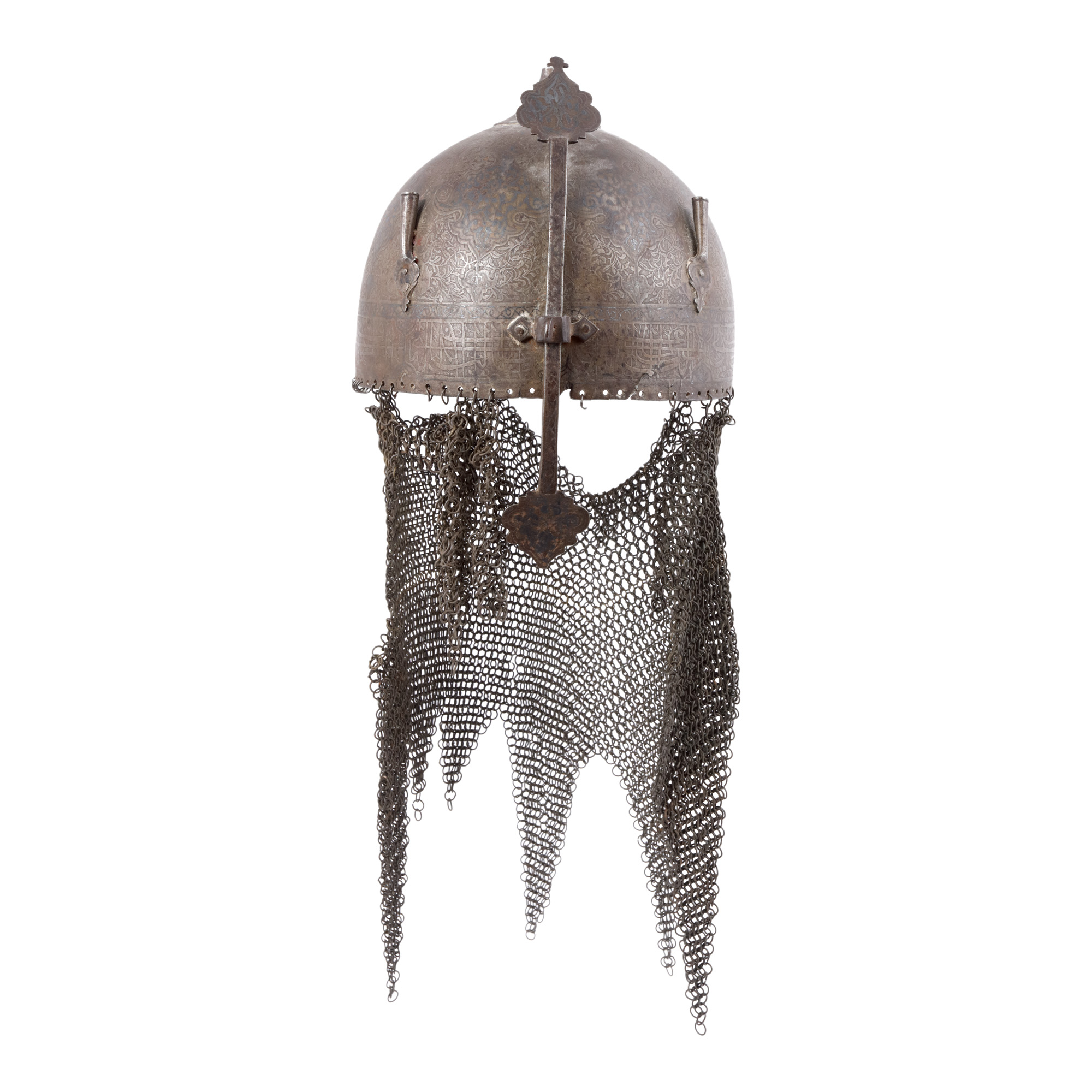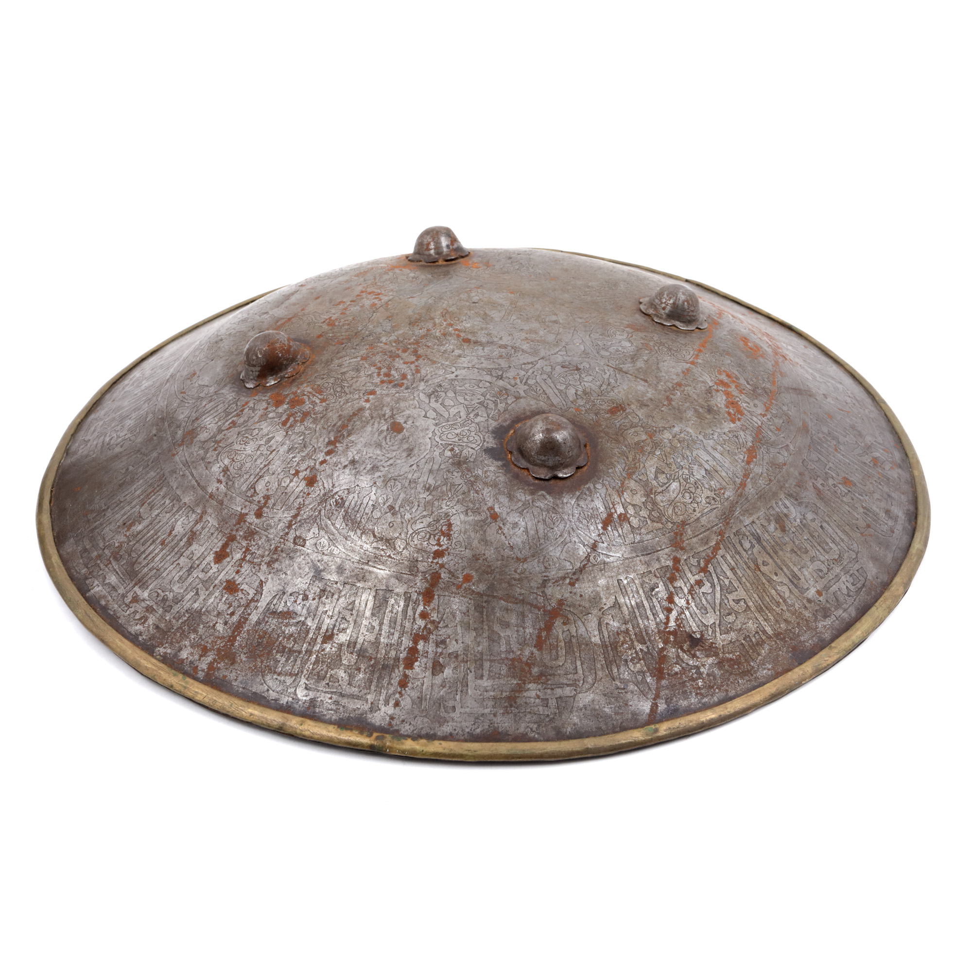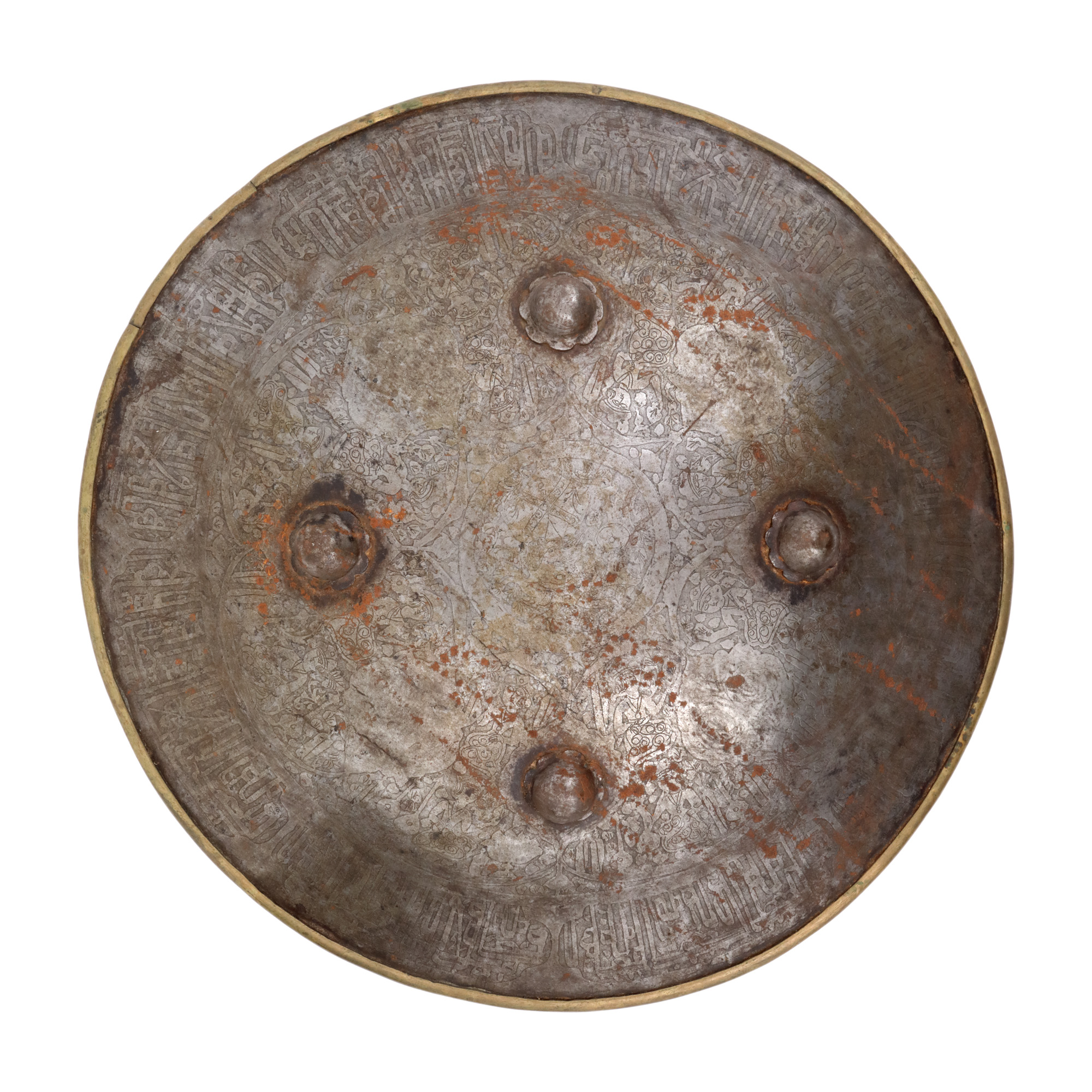 35. Set gravat format din cască, scut și armură de braț, Persia, sec. XIX