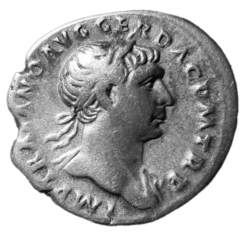 38C. Monedă Denarius Traian, tip Trofeul armelor, 107 e.n., argint